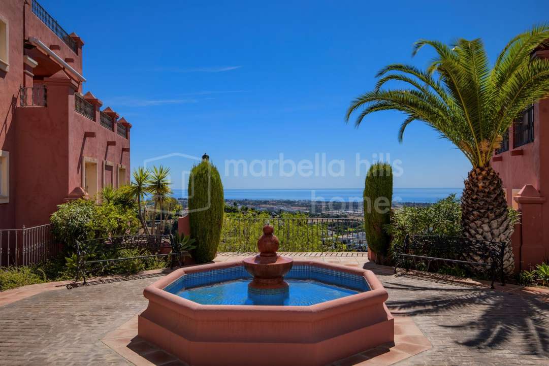 Ground floor apartment for sale in Monte Halcones, Benahavís with panoramic Mediterranean views, large terrace, private garden, 2 en-suite bedrooms and prime location near La...