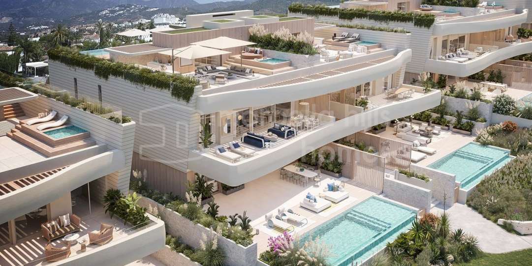 Key-ready luxury beachfront apartments and penthouses for sale in Estepona. 2 to 4 bedrooms, sea views, premium design and prices from 2.310.000€ to 5.000.000€.