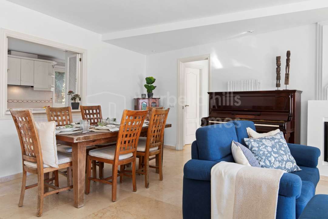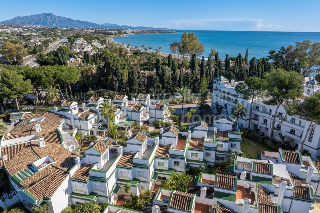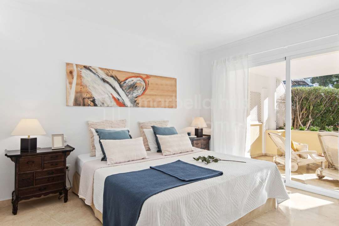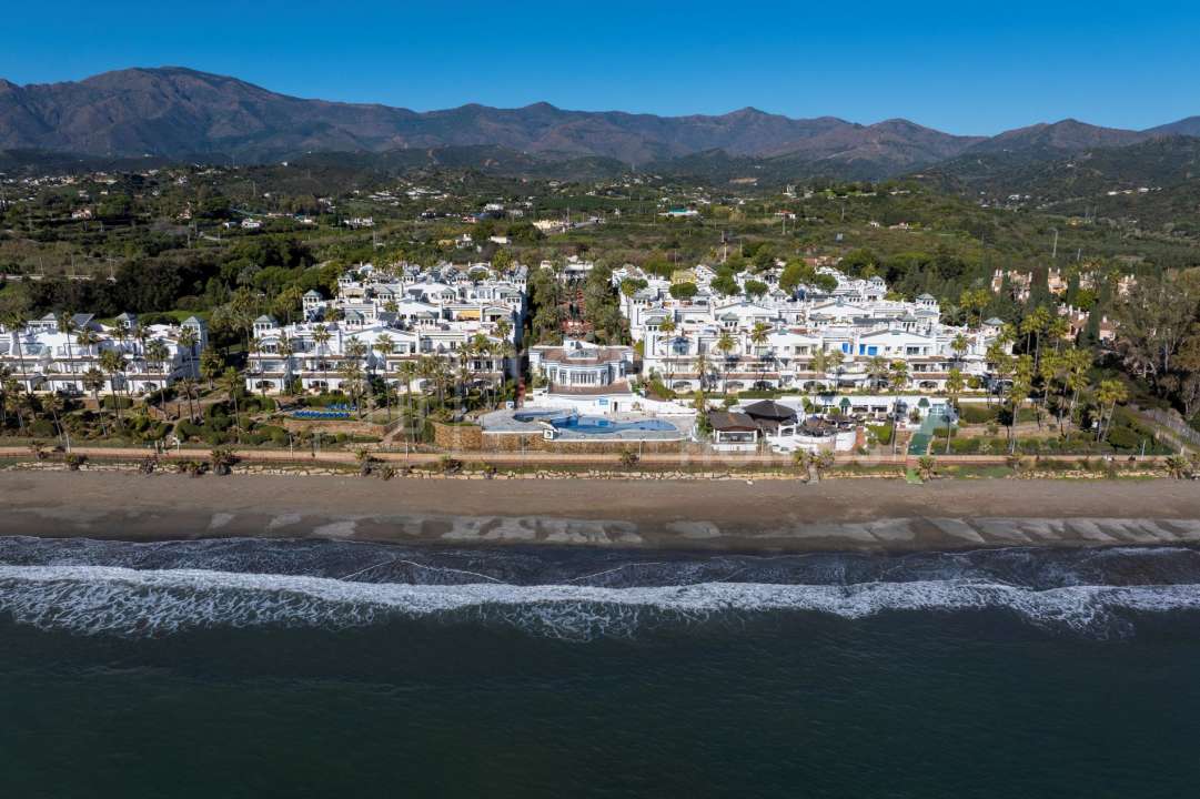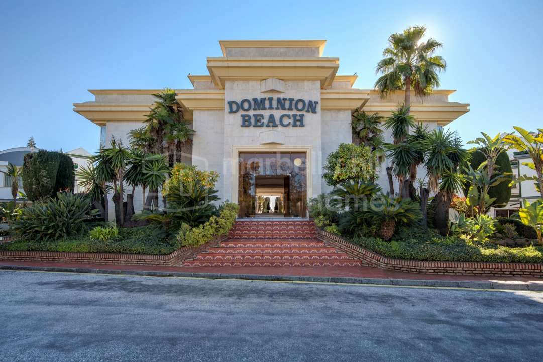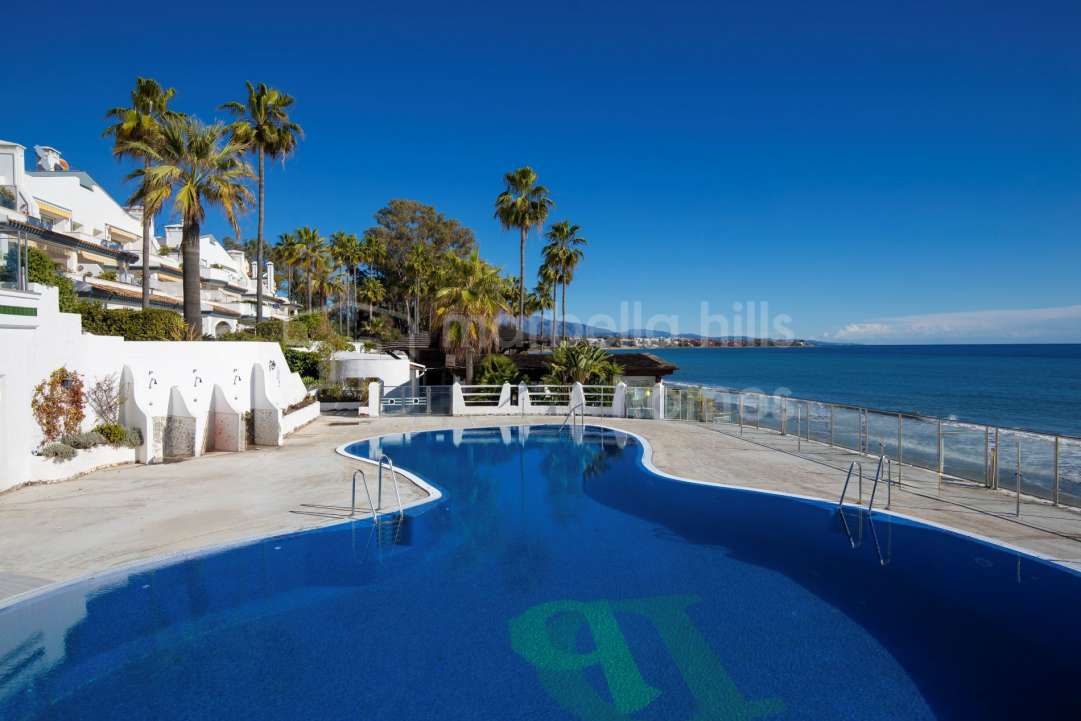 Frontline beach apartment for sale in Dominion Beach, Estepona East. 3 bedrooms, private garden, south facing, direct beach access and strong investment potential.