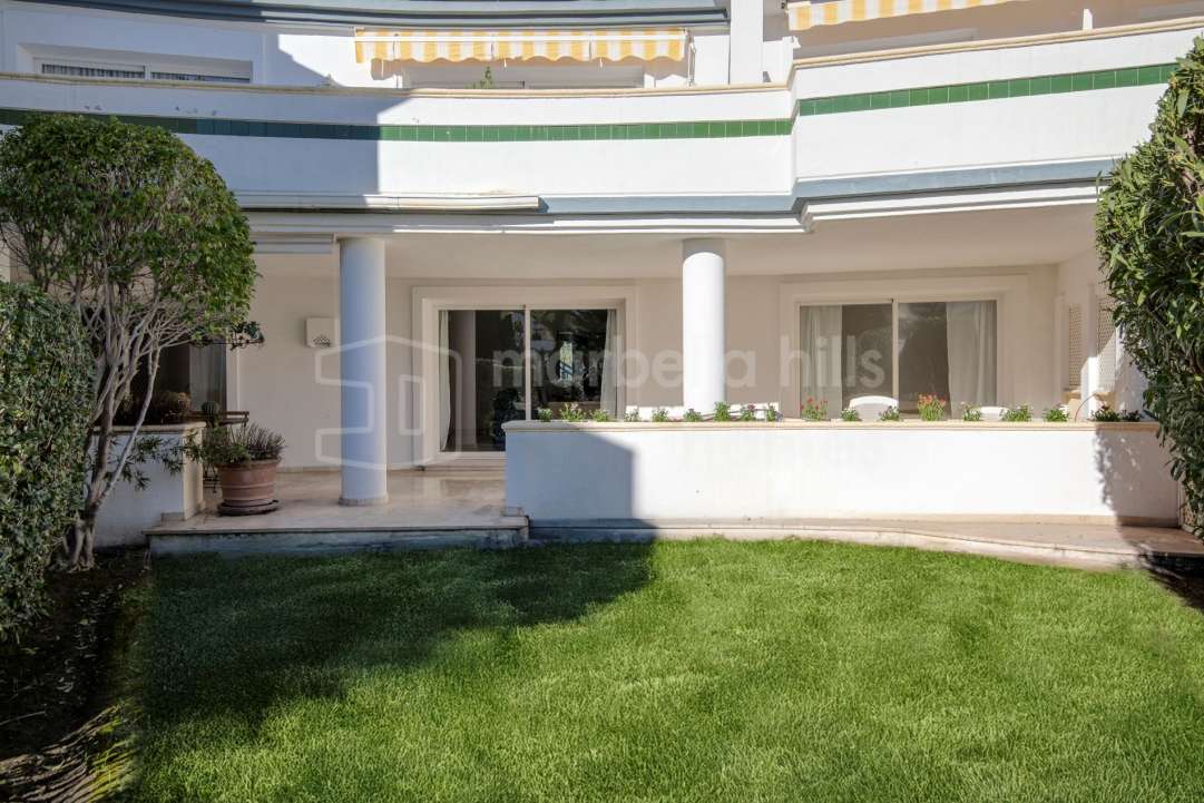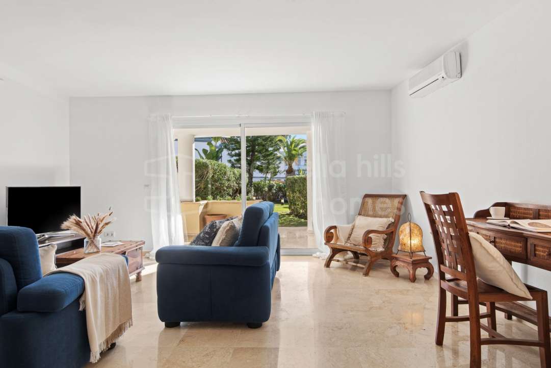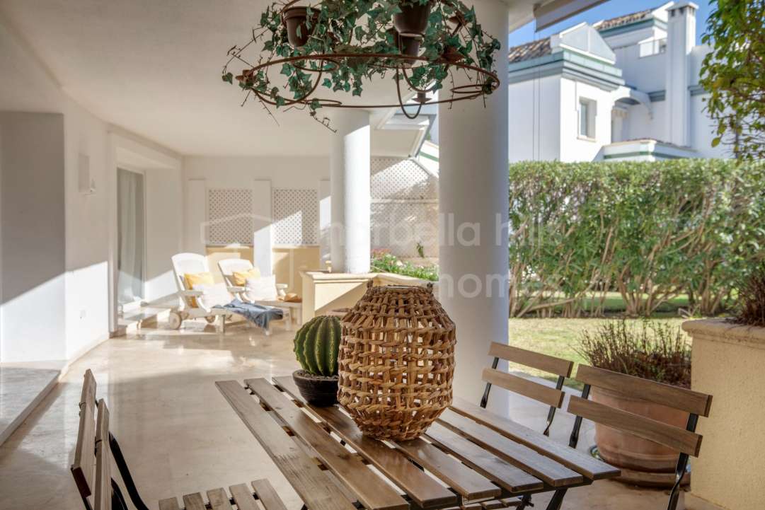 Refurbished ground-floor apartment in Golden Beach, Elviria. Steps from the beach, modern interiors, private terrace and tourist licence. Ideal home or investment.