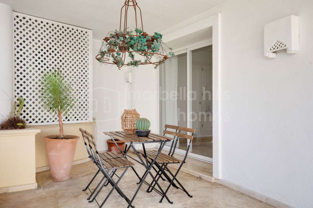 Refurbished beachside apartment in Golden Beach, Elviria. Modern design, west-facing terrace and tourist licence. Ideal for living or investment.
