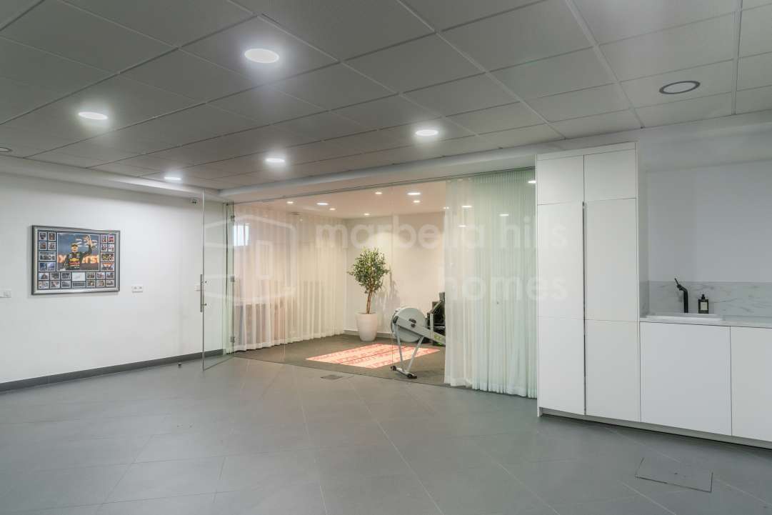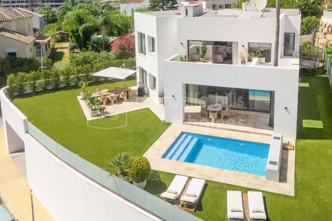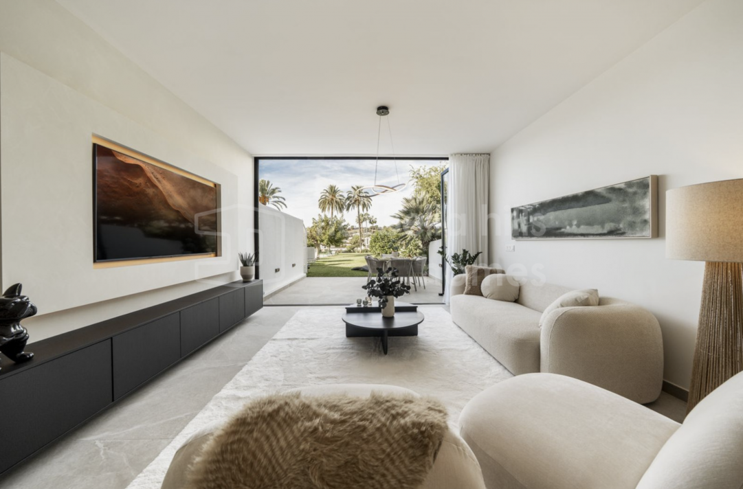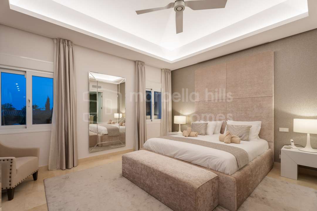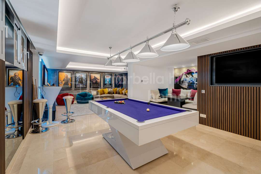 Modern semi-detached villa for sale in Altos de Salamanca, Golden Mile – refurbished, 5 bedrooms, gym, cinema, solarium and sea views.