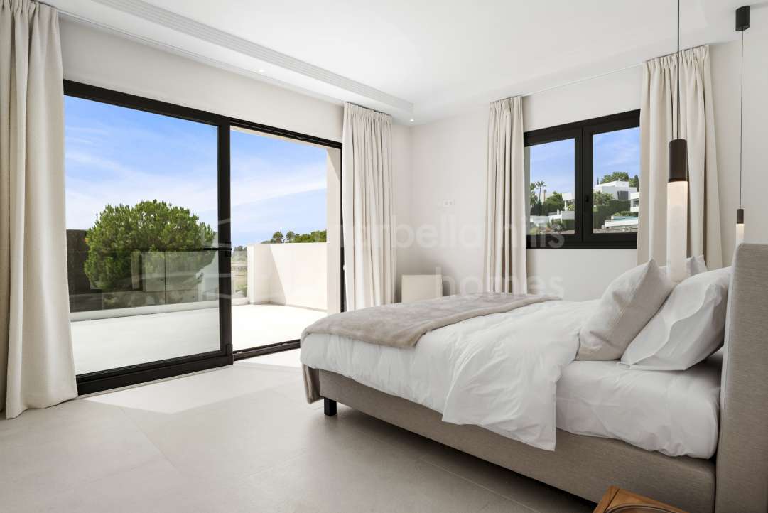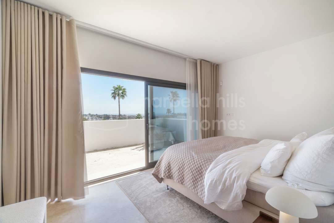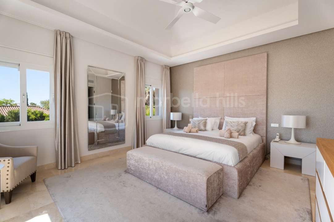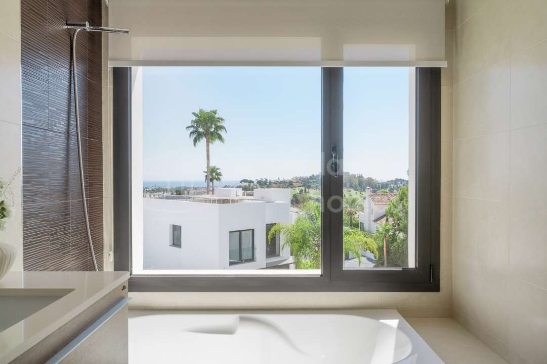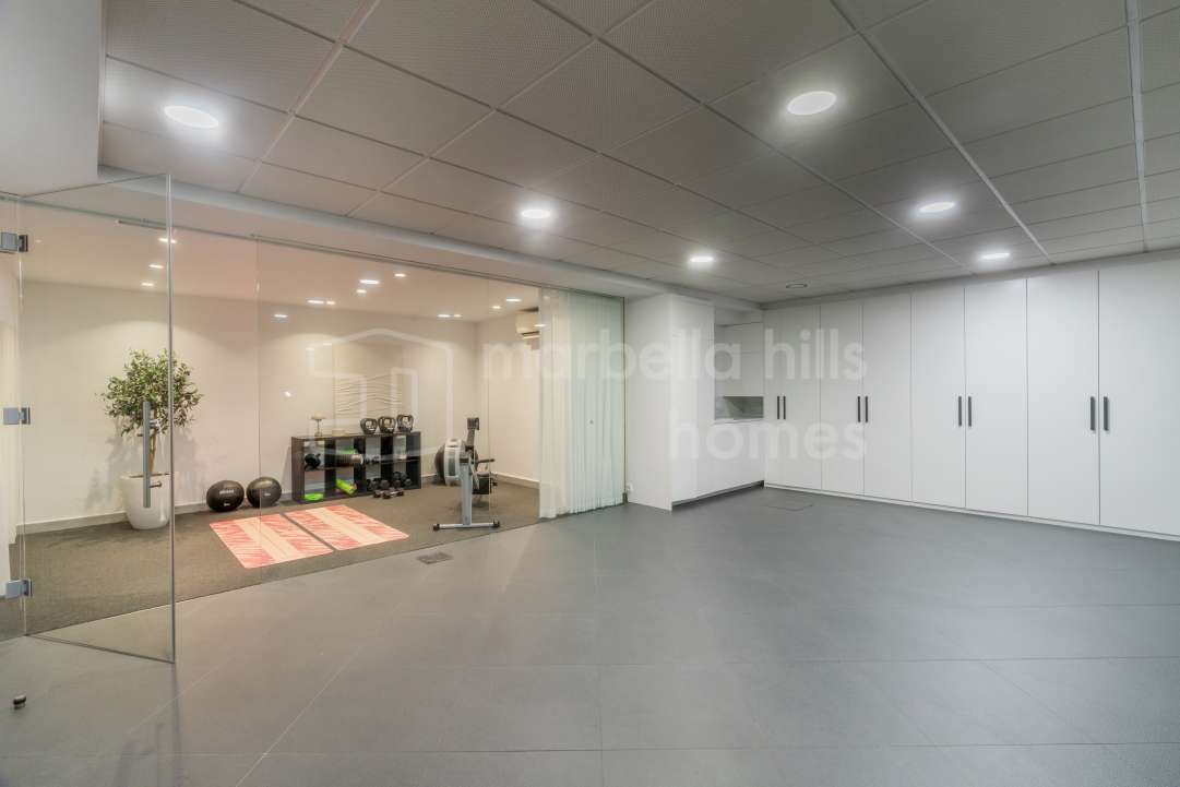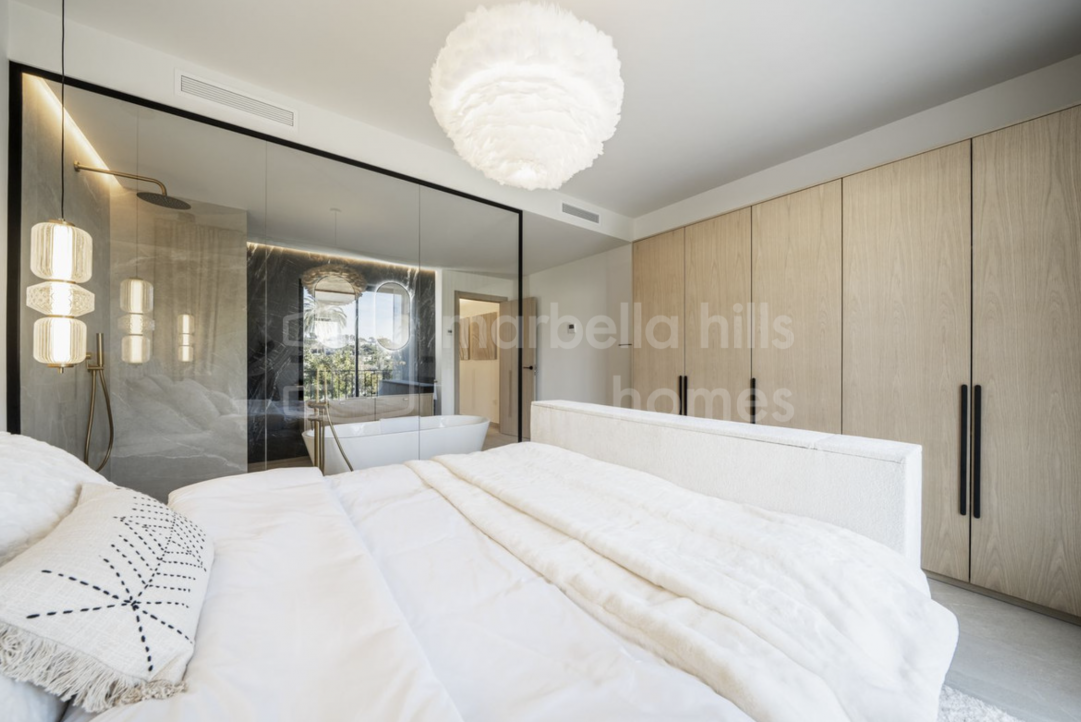 Modern semi-detached villa for sale in Altos de Salamanca, Golden Mile – refurbished, 5 bedrooms, gym, cinema, solarium and sea views.