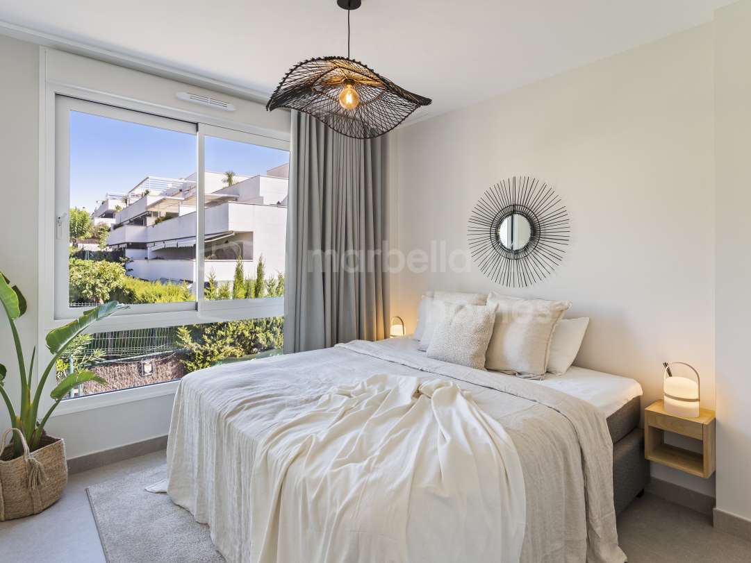Located in the peaceful residential enclave of Cumbres de Los Almendros, just below Monte Halcones, this elegant first-floor apartment combines Mediterranean charm, privacy, and...