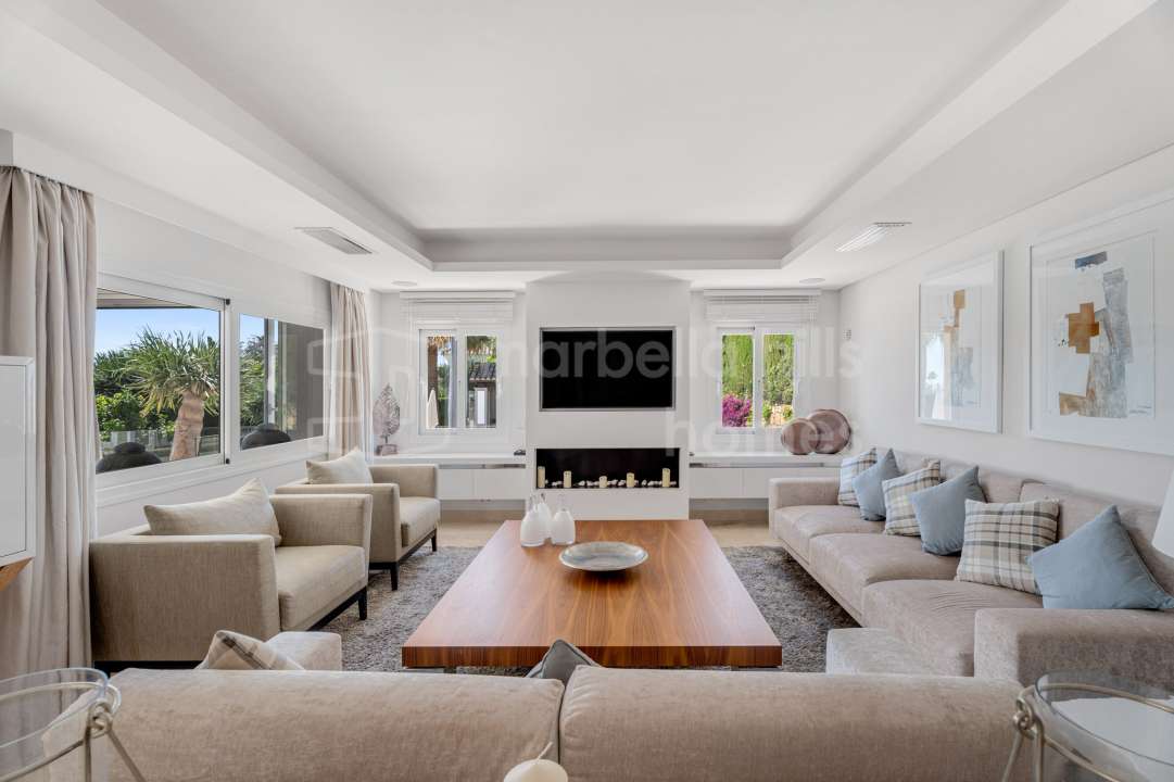This spectacular villa for sale in Nueva Andalucía, Marbella, offers the perfect combination of contemporary design, luxury features and a prime location on the Costa del Sol....
