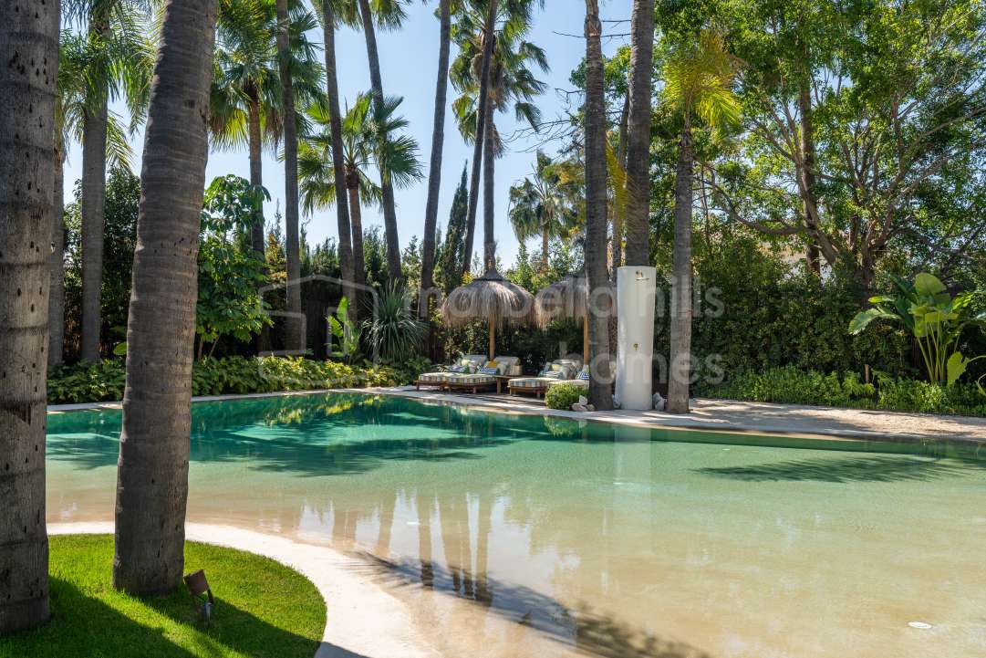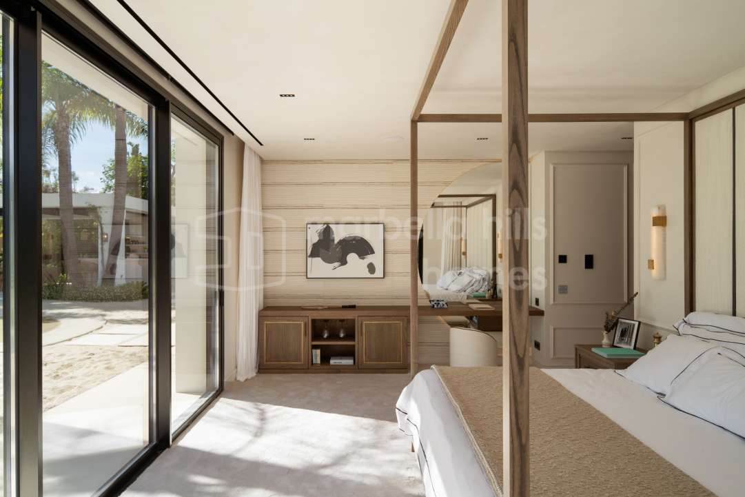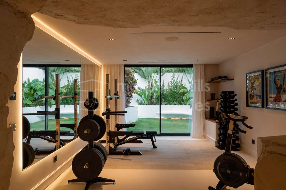 Luxury villa in La Cerquilla Nueva Andalucía Marbella. 4 bedroom modern villa with private pool, large plot, terraces, gym and cinema near golf.