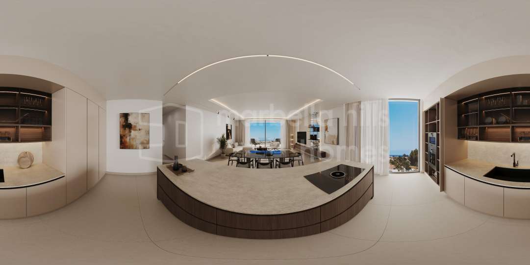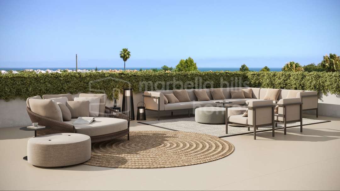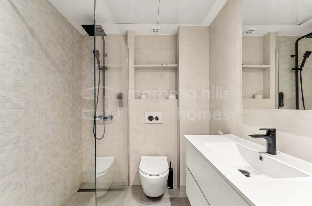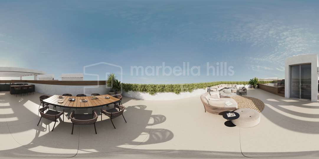 Fully renovated three-bedroom duplex penthouse for sale in Castiglione, San Pedro de Alcántara, offering panoramic sea views, two spacious terraces, modern Scandinavian design,...