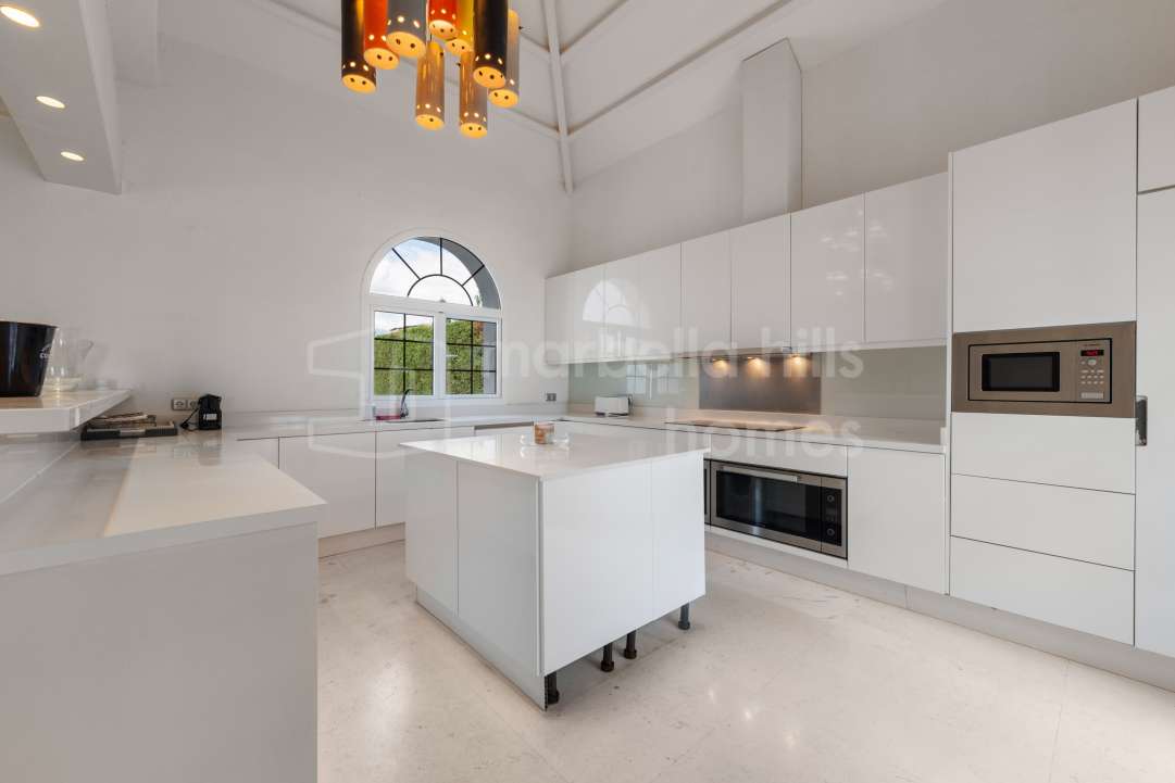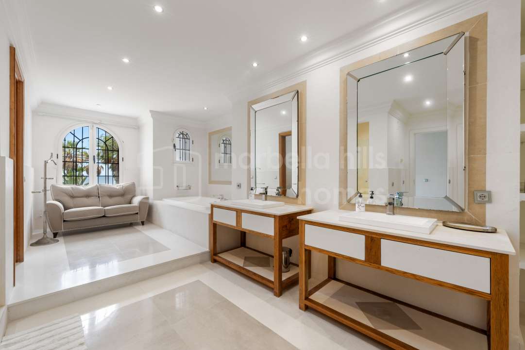 Luxury villa in Nueva Andalucía, Marbella with 4 bedrooms, golf & sea views, private pool, outdoor kitchen, terraces and garage in Golf Valley.