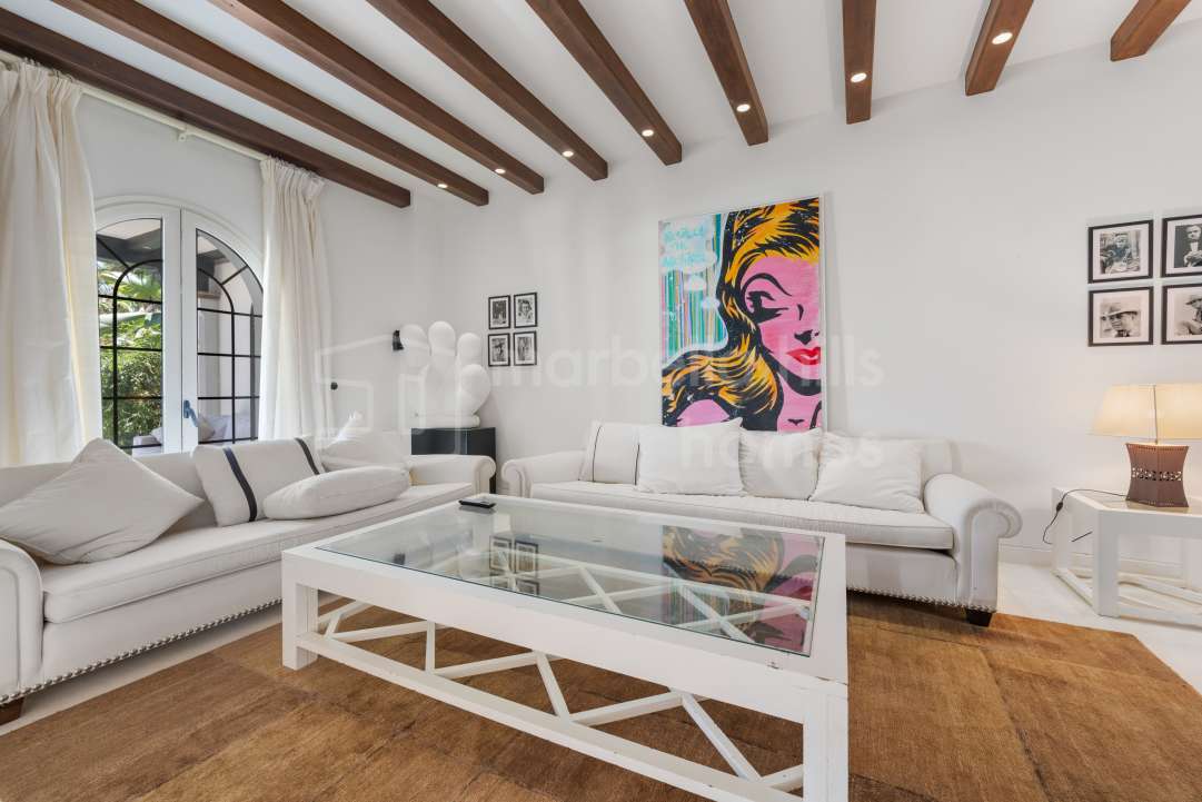 Luxury villa for sale in Nueva Andalucía Marbella, frontline to Los Naranjos Golf. 4 bedrooms, infinity pool, sea views and modern design. Prime Marbella location.