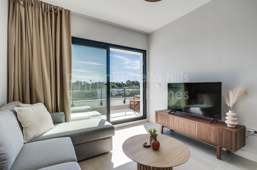 Fully renovated luxury apartment on Marbella Golden Mile. Gated community, terrace with outdoor kitchen, near Puente Romano.