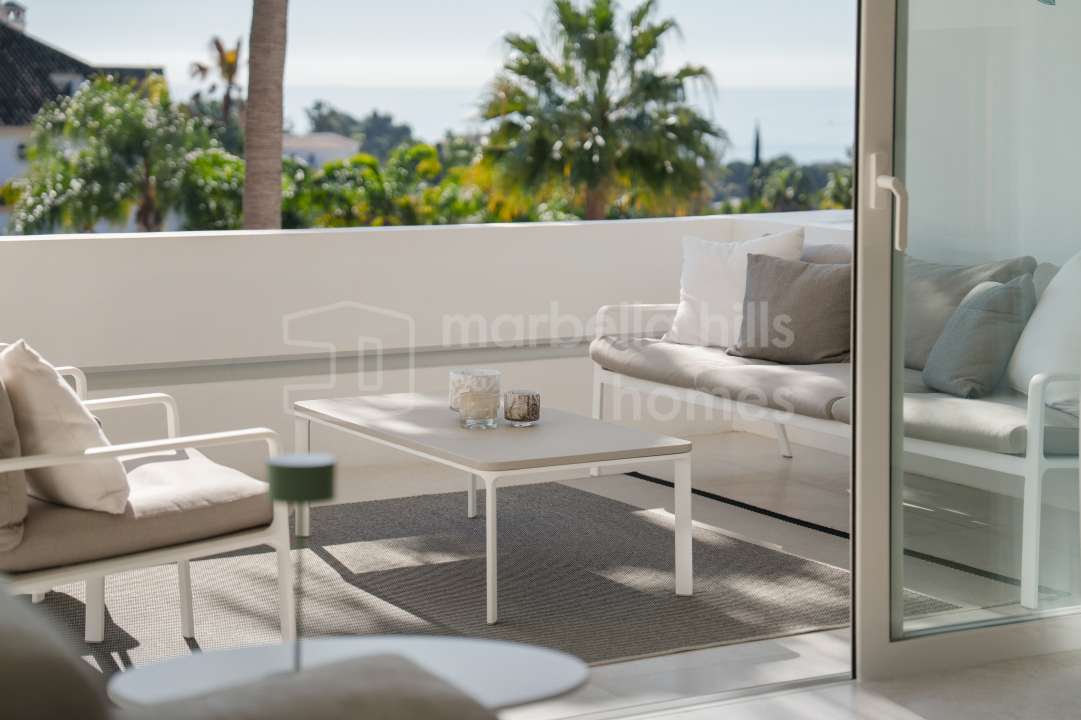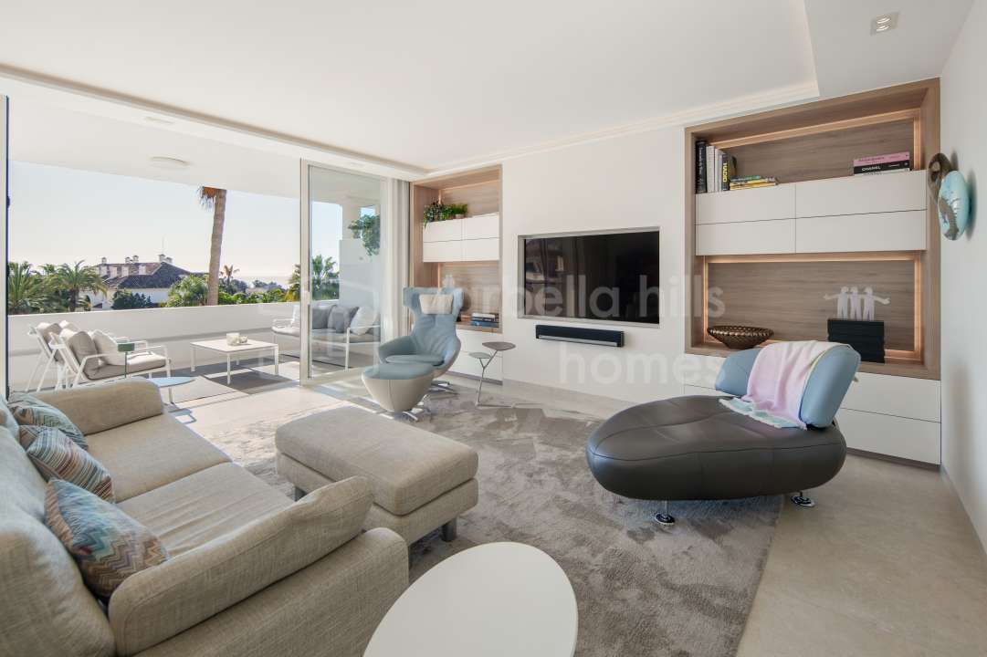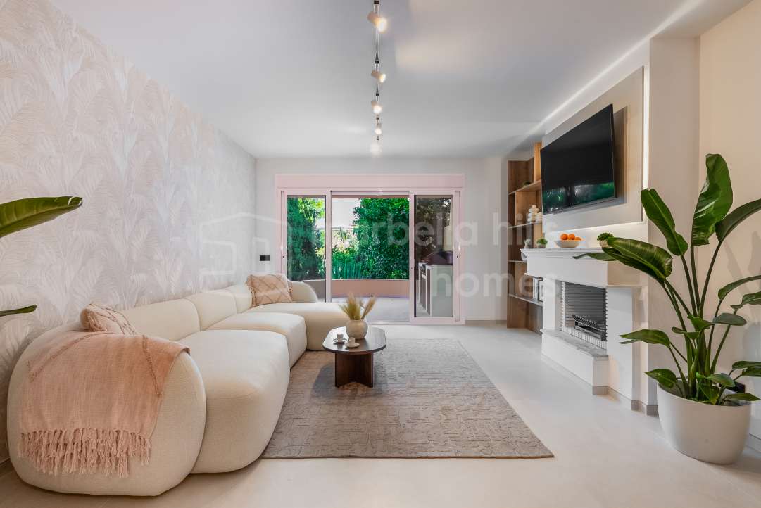 Fully renovated luxury apartment on Marbella Golden Mile. Gated community, terrace with outdoor kitchen, near Puente Romano.