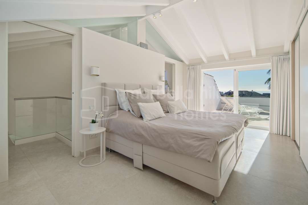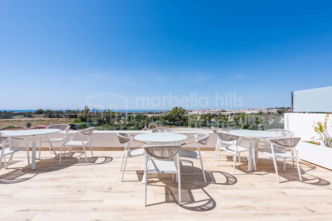 Modern 3 bedroom penthouse for sale in Estepona, New Golden Mile. Features sea views, large solarium, pool, gym and prime location. Ideal as an investment or holiday home.