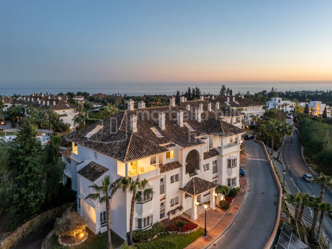 Discover a luxury duplex penthouse in Monte Paraiso, Marbella’s Golden Mile. 3 bedrooms, sea & mountain views, terraces, gated community with pool & gym.