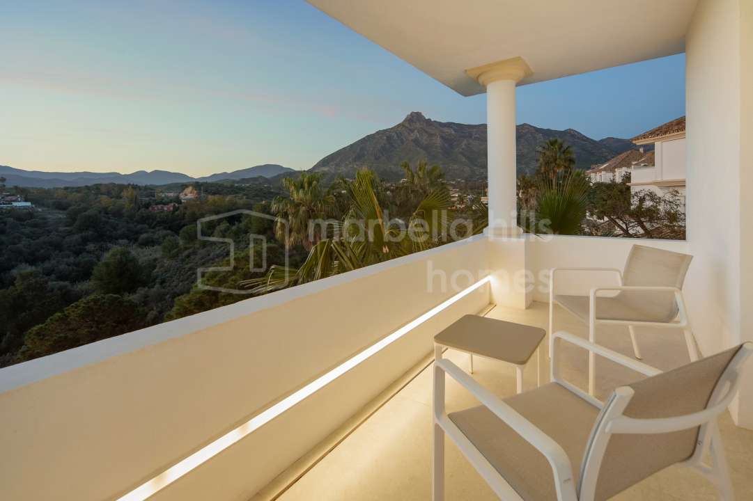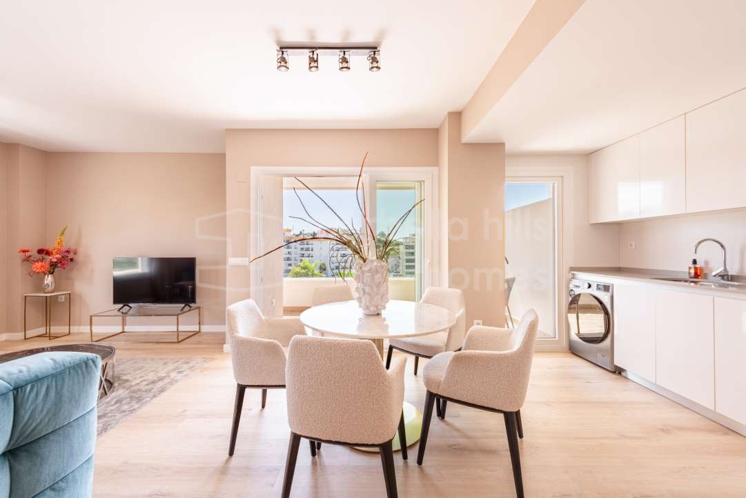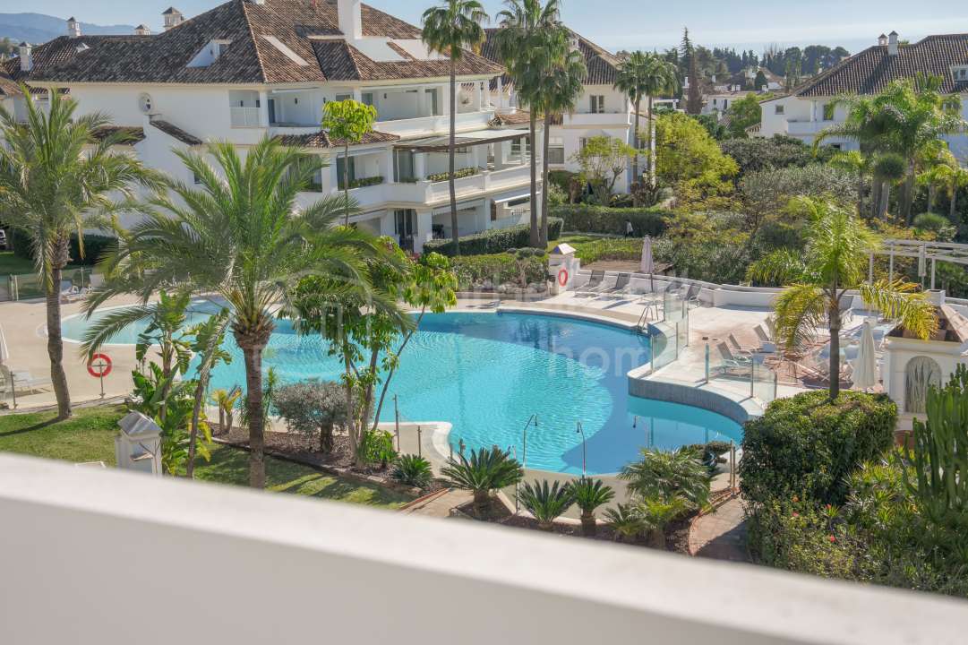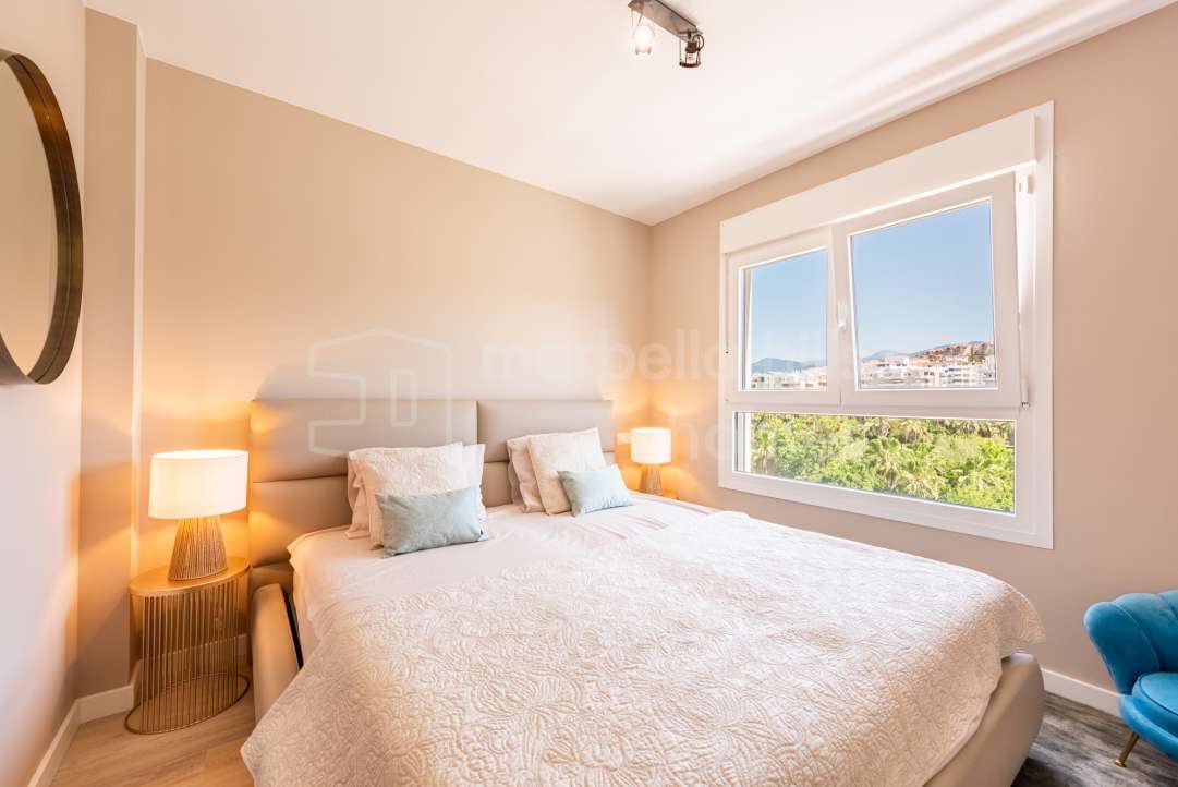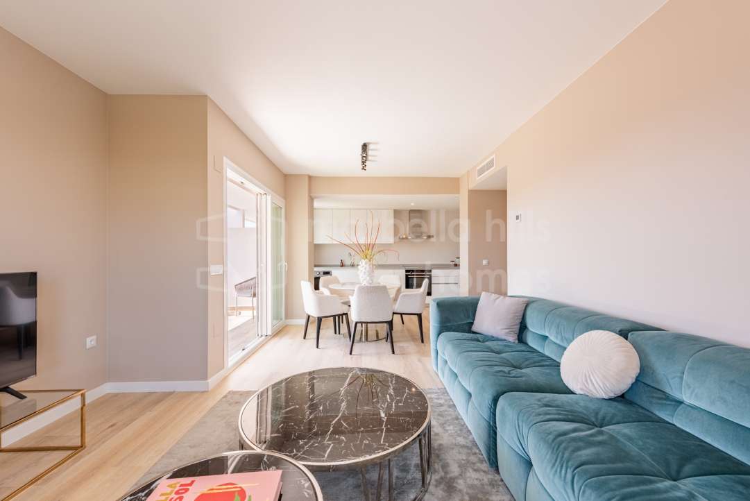 Luxury apartment in Jardines de Andalucía Nueva Andalucía. 2 bedroom renovated apartment with large terrace, sea and mountain views near golf and Puerto Banús.
