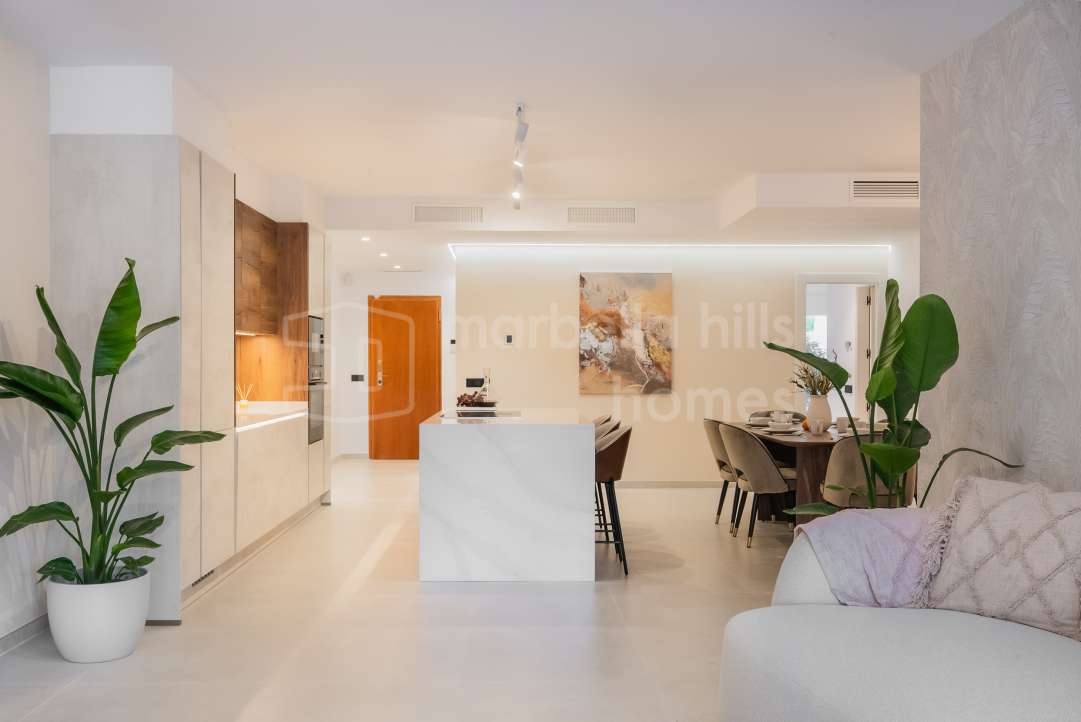 This luxury ground-floor apartment near Puerto Banús, Marbella, offers 3 bedrooms, a large south-facing terrace, and modern open-plan living within a secure gated community....