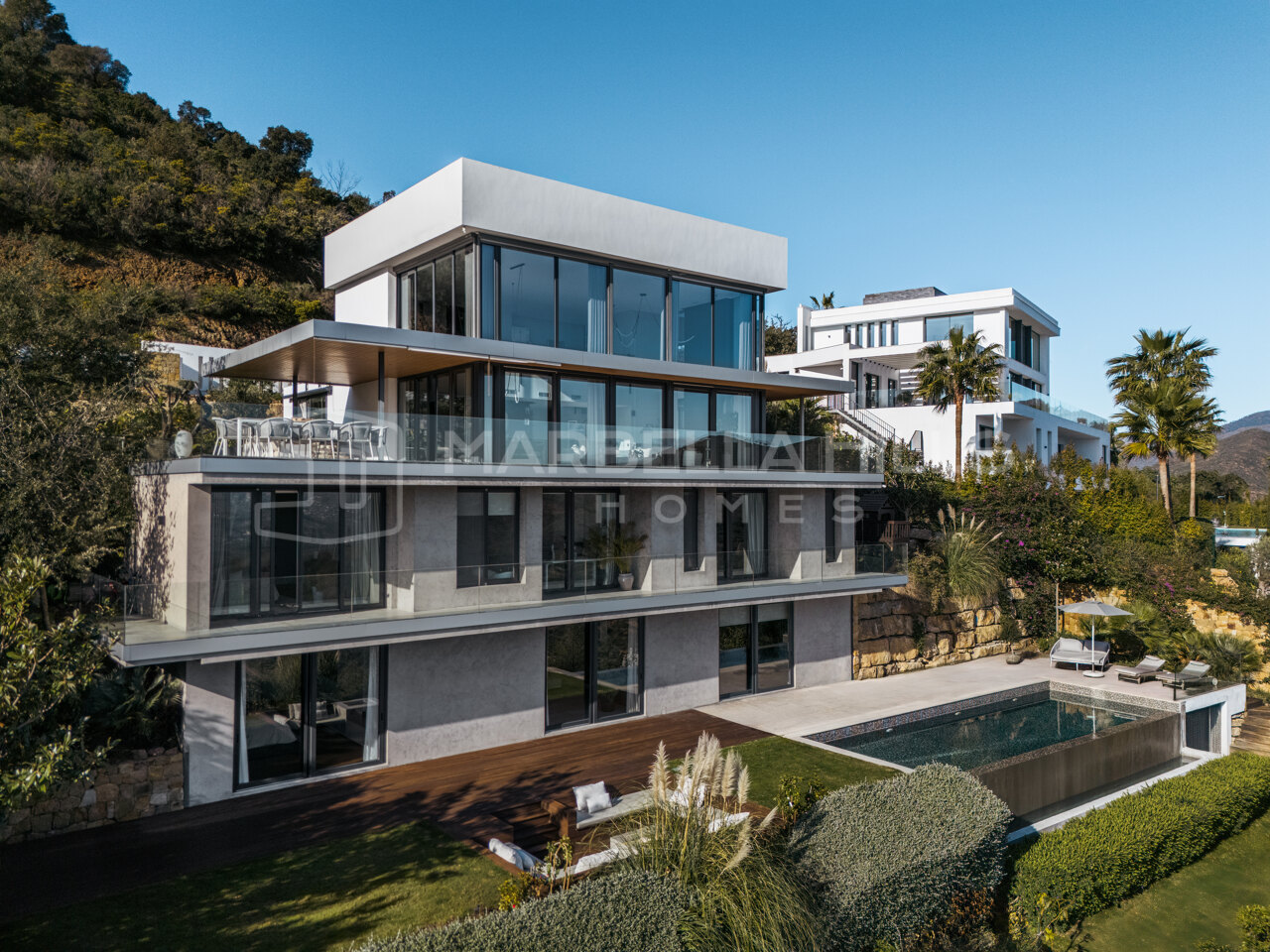 This newly built detached villa is located in La Vera, a private and exclusive residential complex in Elviria, one of the most desirable areas in Marbella East. The gated community consists of just seven villas and eighteen townhouses, offering the perfect balance of privacy, modern design, and quality of life.