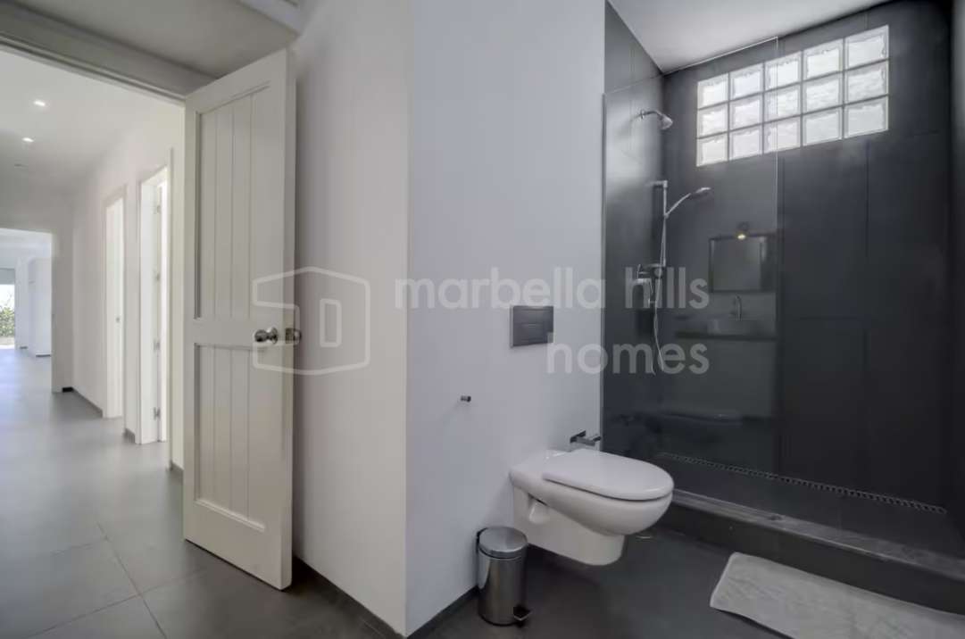 Discover this luxury modern villa for sale in Elviria, Marbella. 5 bedrooms, heated pool, private garden, and walking distance to the beach in East Marbella.