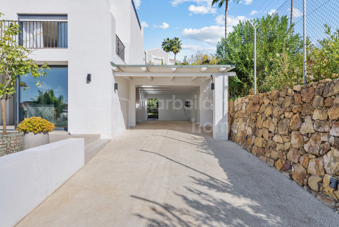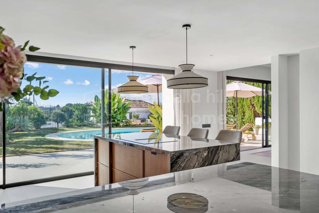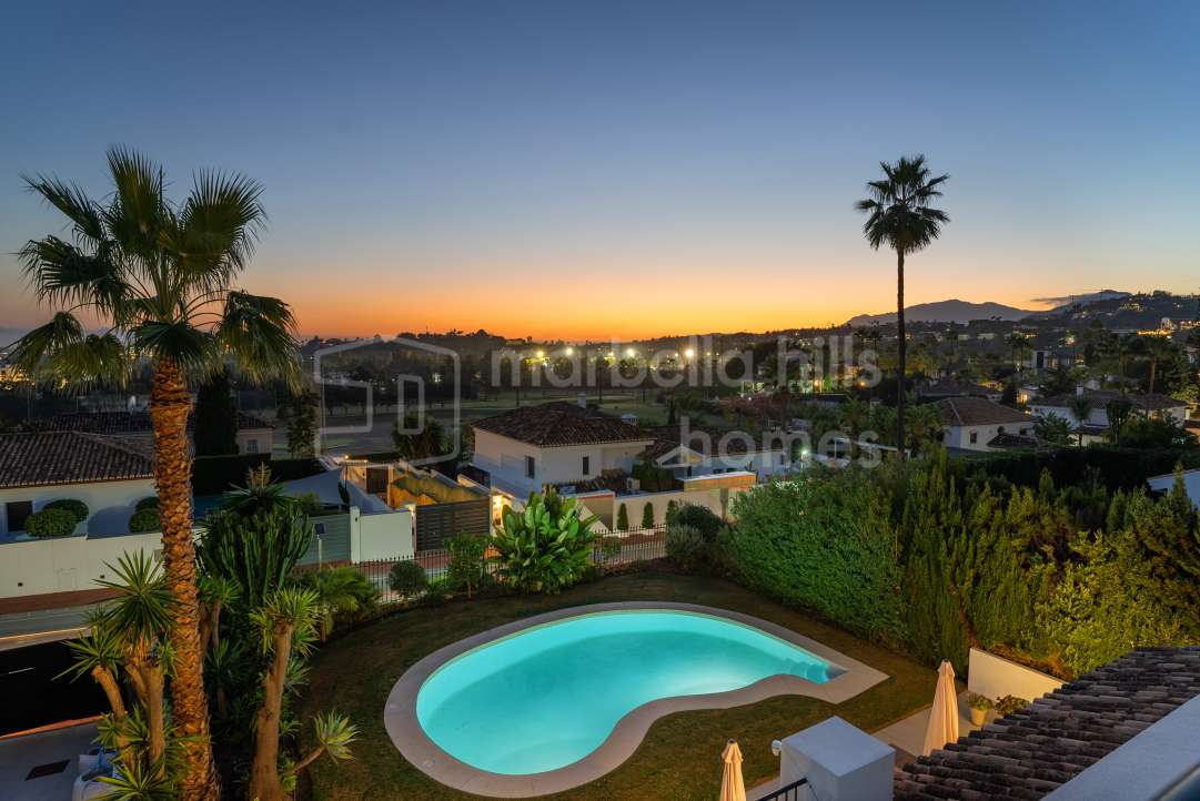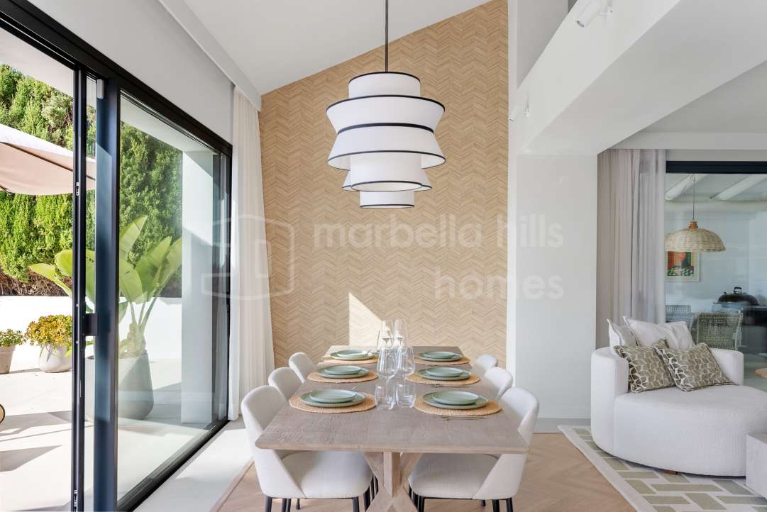 Modern Scandinavian-style villa in Nueva Andalucía with panoramic views, luxury interiors, landscaped gardens, rooftop terrace, pool and southwest orientation in Marbella’s Golf...