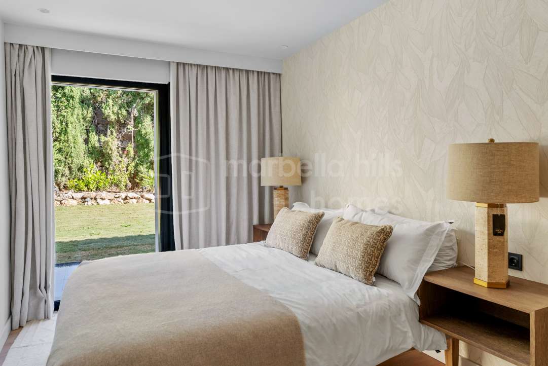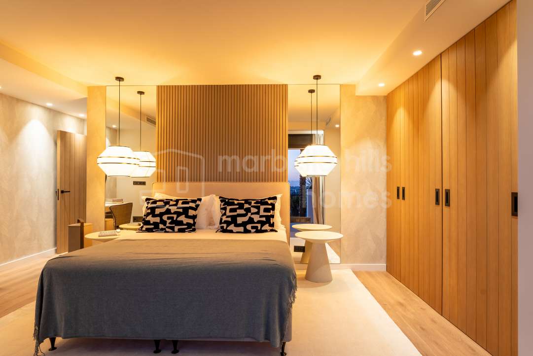 Modern three-bedroom apartment for sale in Palacetes Los Belvederes, Nueva Andalucía. Fully renovated in 2024 with designer interiors, smart home system, private terrace,...