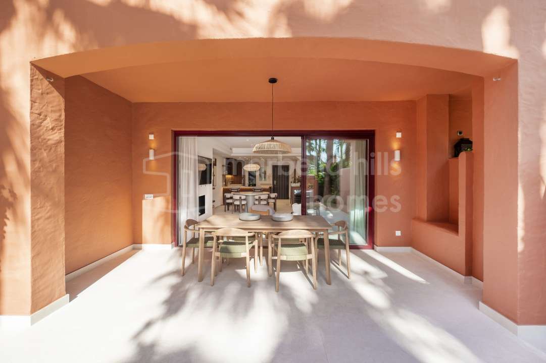 Beautifully renovated 4-bedroom townhouse in Altos de Puente Romano with bespoke interiors, west-facing private garden, solarium, garage, and walking distance to Puente Romano....