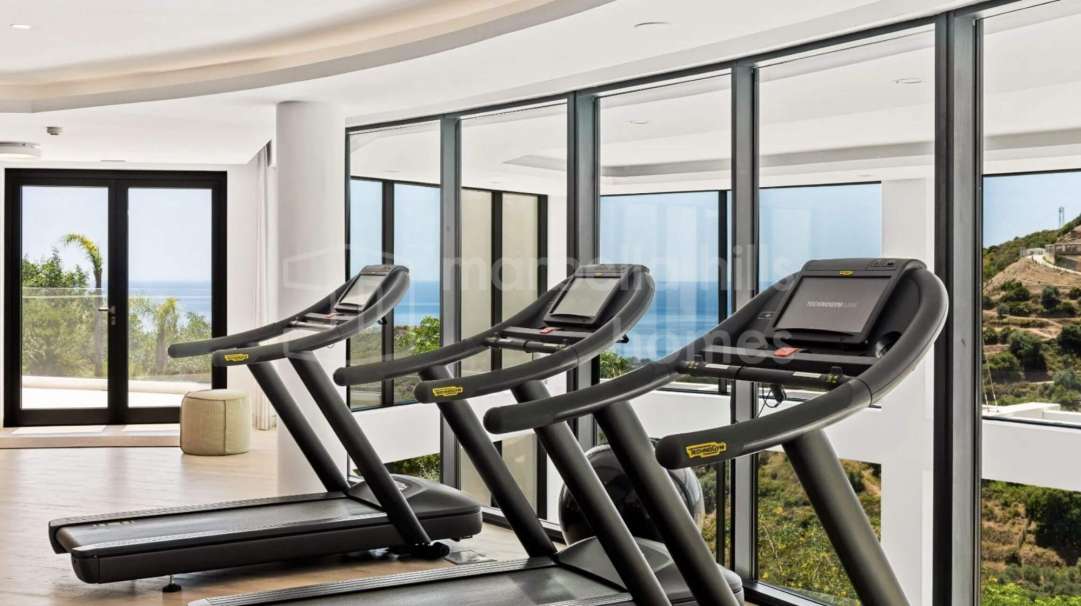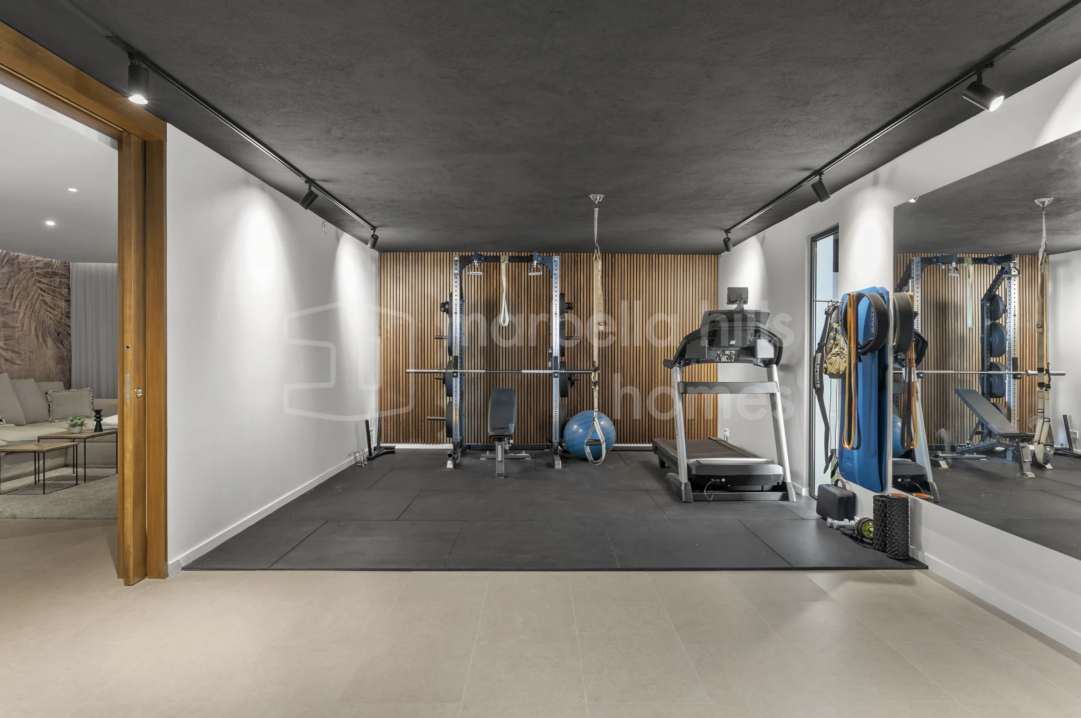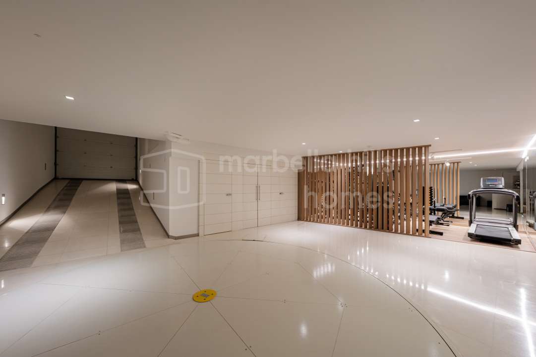Villa moderna de nueva construcción en El Paraíso Medio, Estepona. Cinco dormitorios en suite, amplias terrazas, piscina, gimnasio y cine privado cerca de Marbella y Puerto Banús.