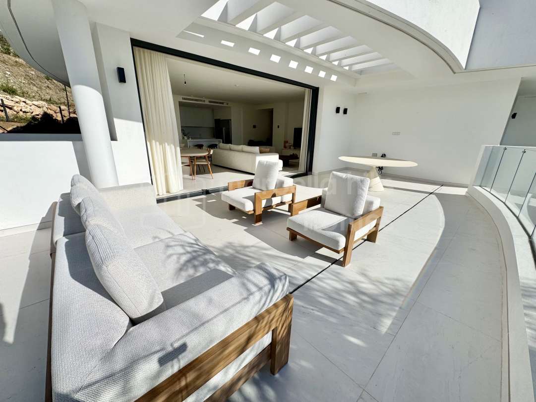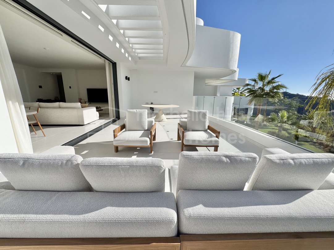 Apartamento contemporáneo de 3 dormitorios en venta en Palo Alto, Ojén. Amplia terraza de 55 m², vistas al mar Mediterráneo, acceso a spa y club social, dos plazas de garaje y...