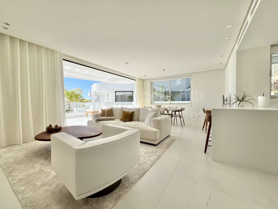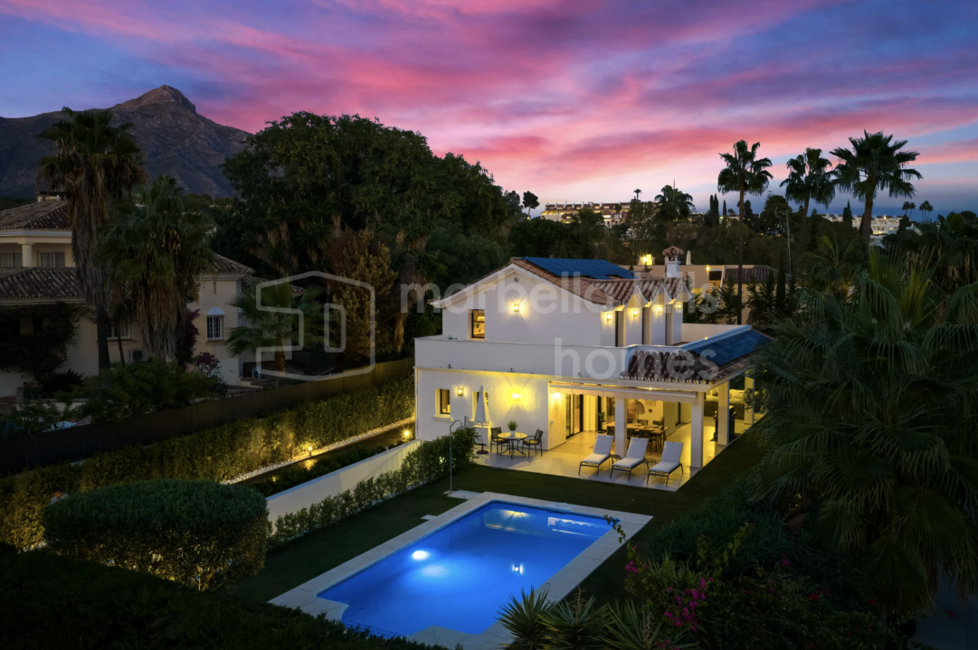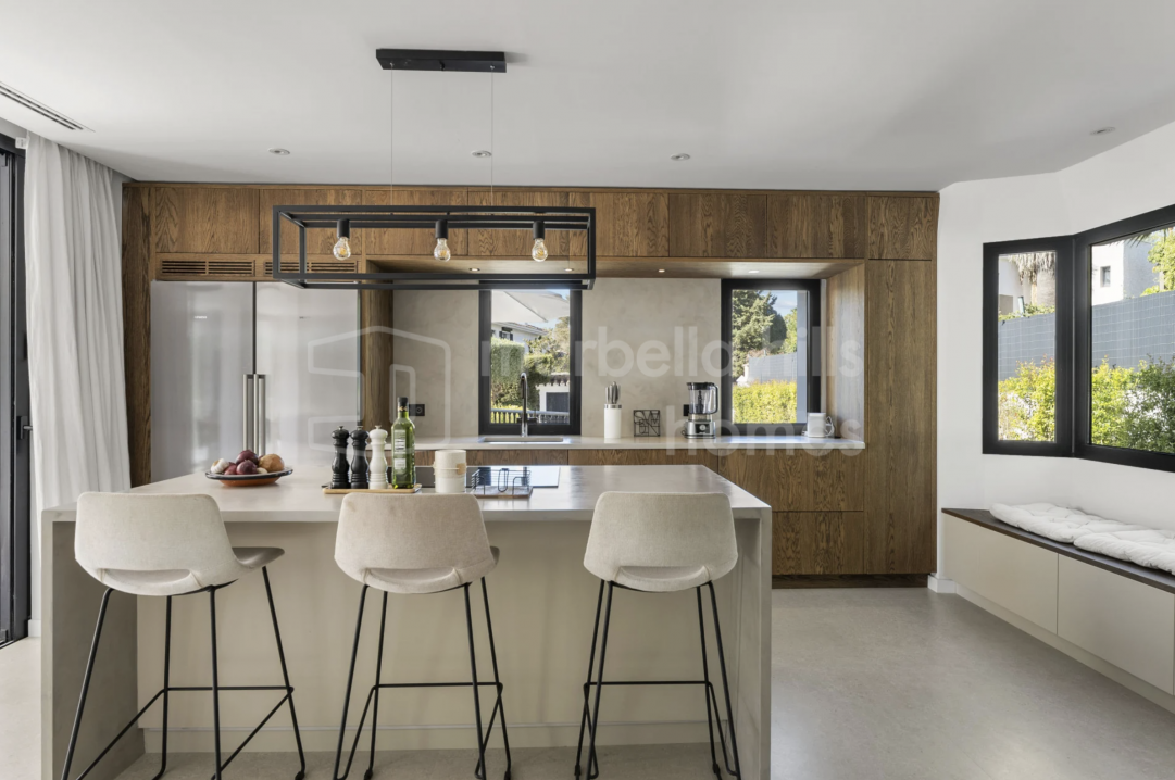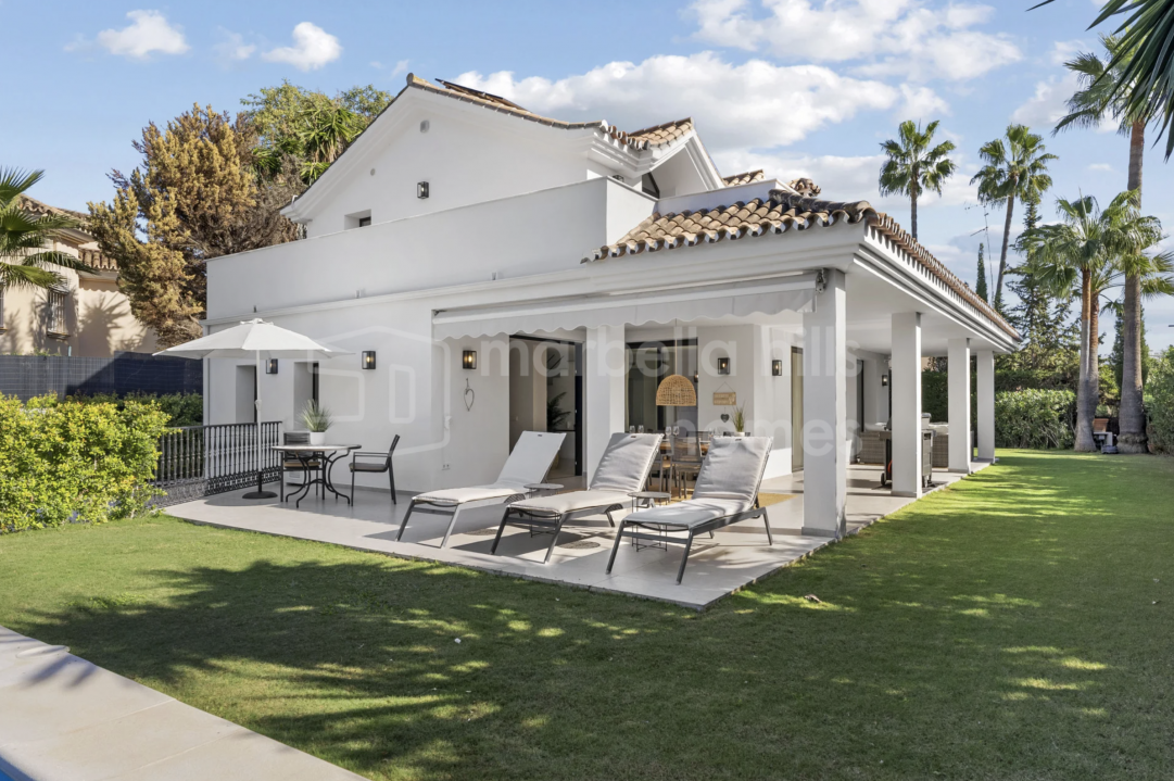 Villa reformada de 4 dormitorios en Nueva Andalucía, Marbella. Diseño escandinavo, espacios abiertos, terraza soleada, gimnasio y garaje en ubicación privilegiada cerca de...