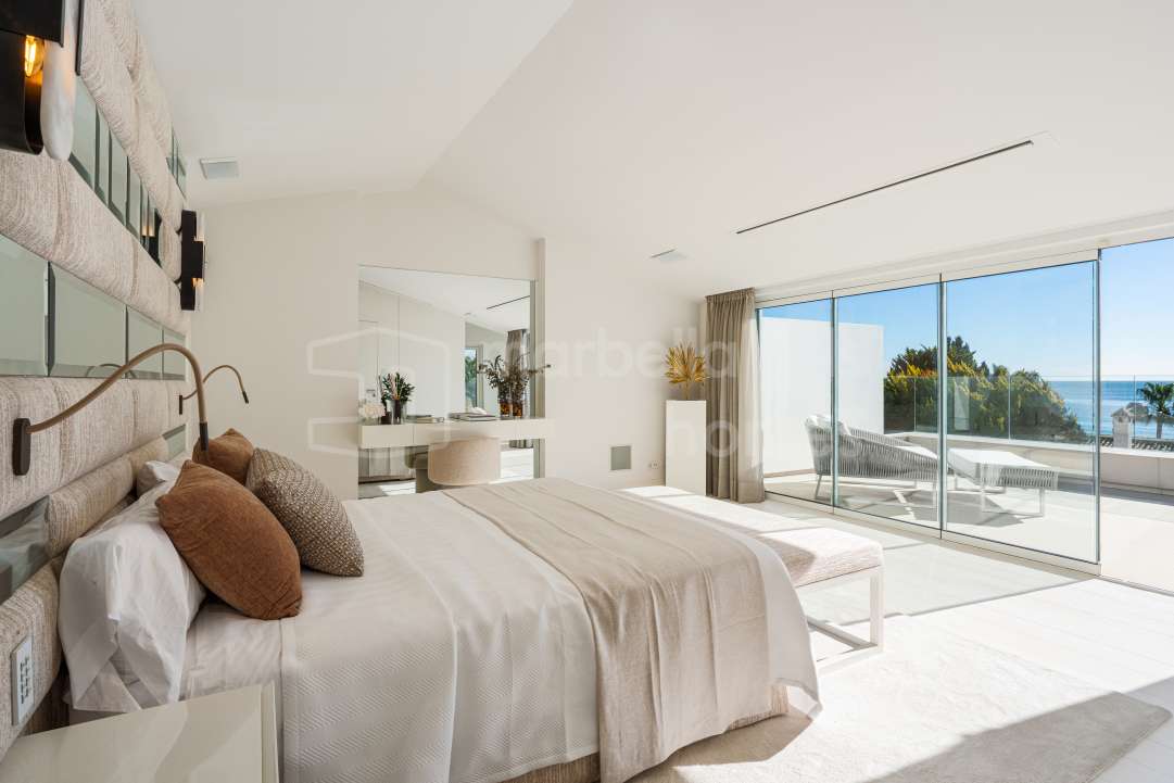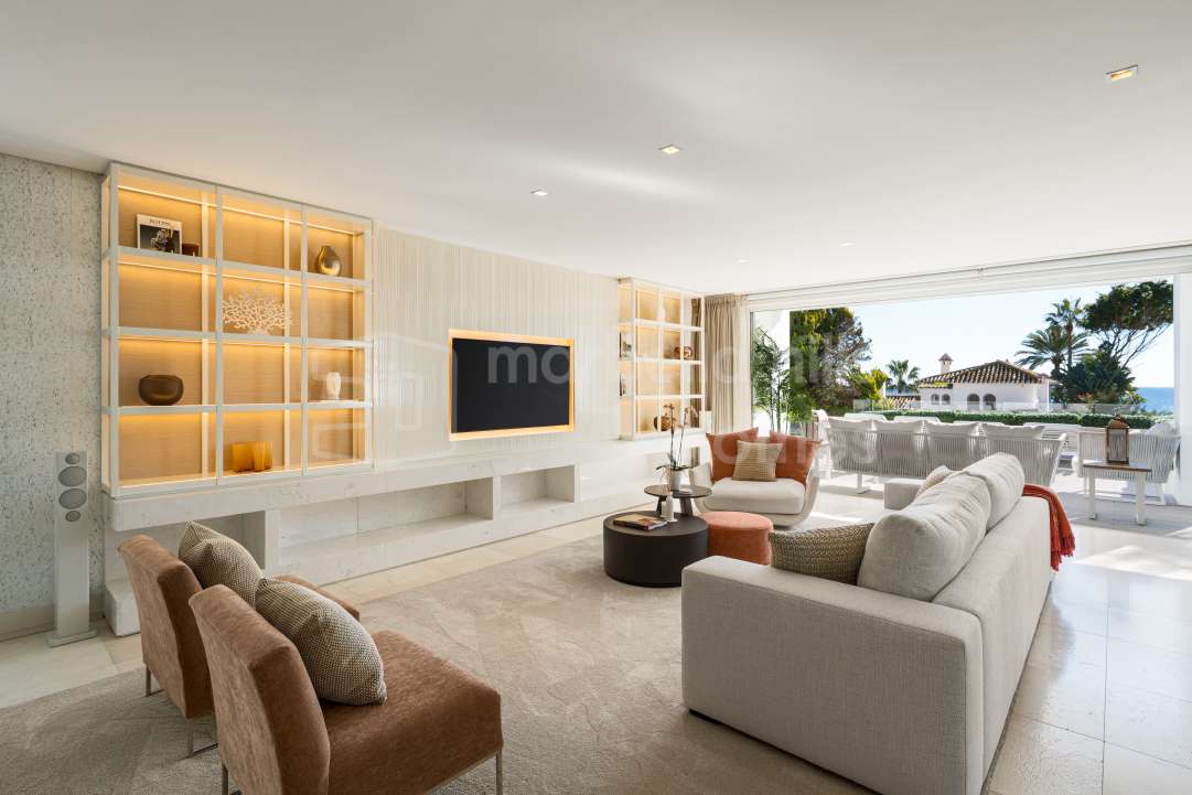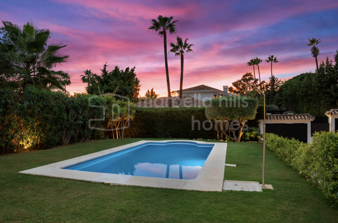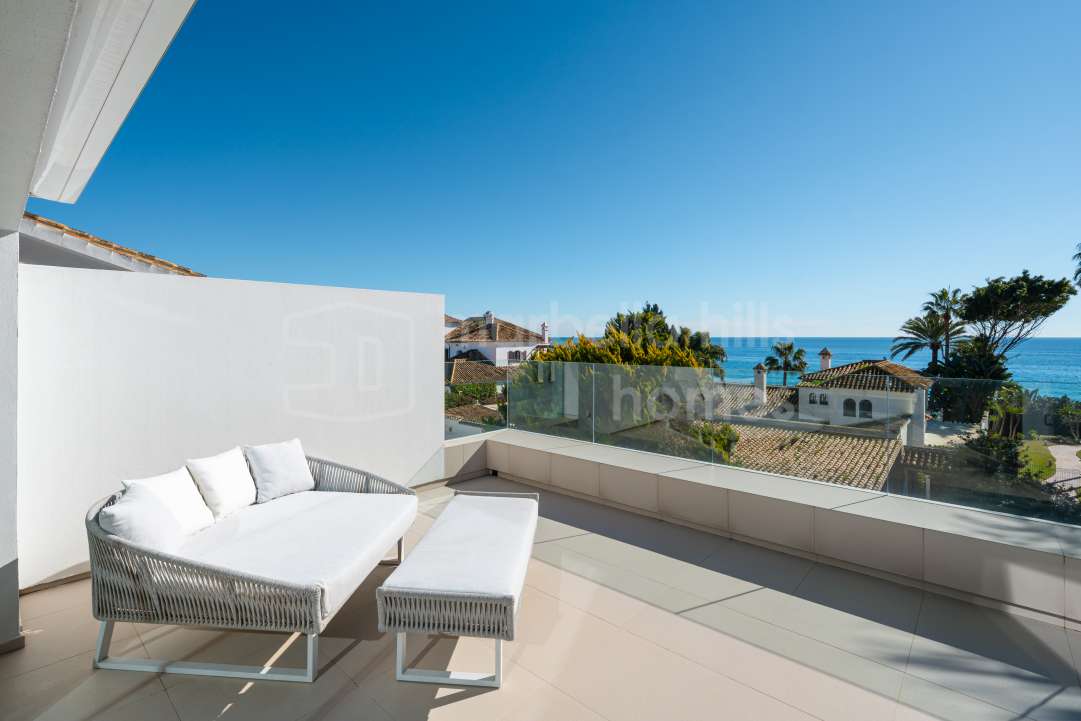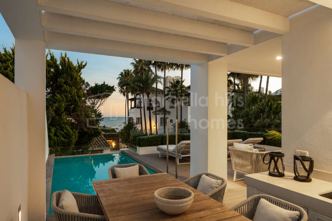 Villa de 5 dormitorios a solo 50 metros de la playa en Marbesa, Marbella Este. Piscina privada, apartamento independiente y excelente ubicación cerca del mar.