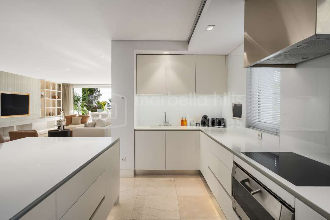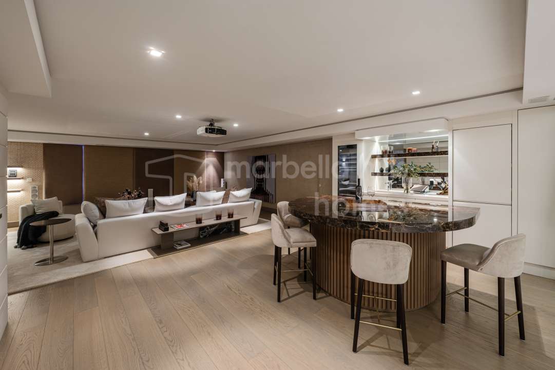 Dúplex reformado de 3 dormitorios en Aloha Gardens, Nueva Andalucía, Marbella. 160m² construidos, 93m² de terrazas, terraza privada con bar y cerca de Puerto Banús.