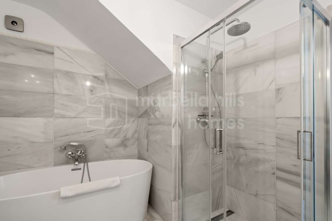 Adosado en Condes de Iza, Marbella. Vistas al mar, solárium, 3+ dormitorios, jardín privado y ubicación ideal cerca de Puerto Banús.