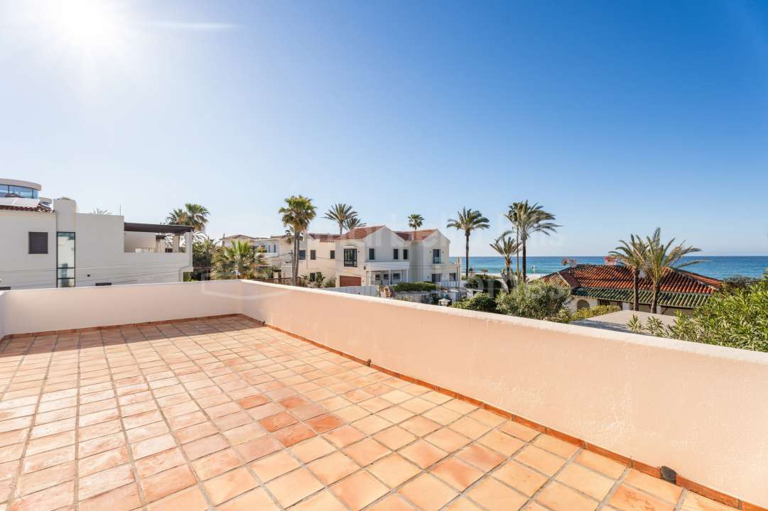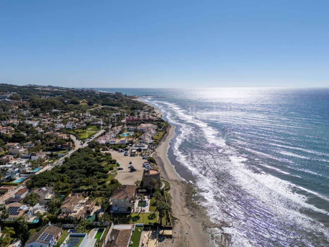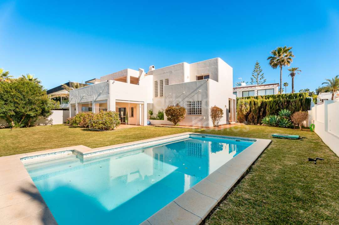 Villa de 5 dormitorios a solo 50 metros de la playa en Marbesa, Marbella Este. Piscina privada, apartamento independiente y excelente ubicación cerca del mar.