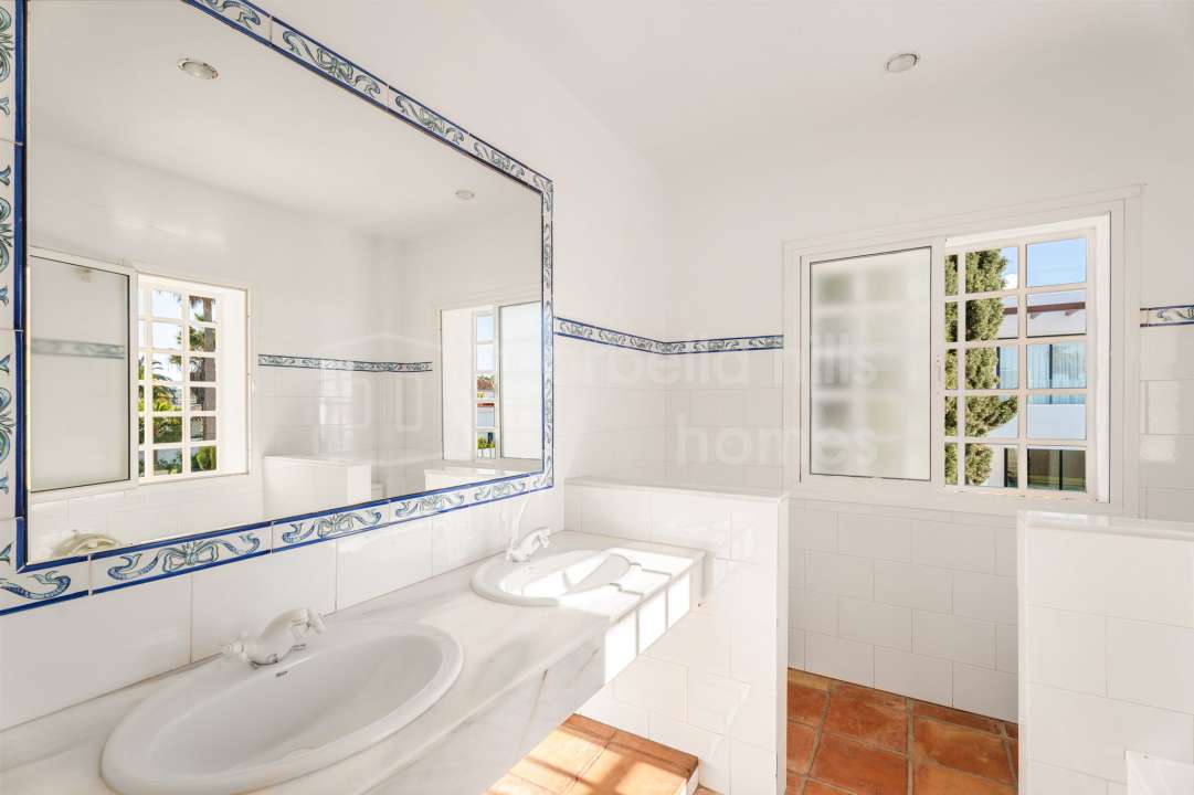 Villa reformada de 4 dormitorios en venta en Elviria, Marbella Este, con vistas al mar, piscina privada, calefacción por suelo radiante y cerca de la playa, golf y todos los...