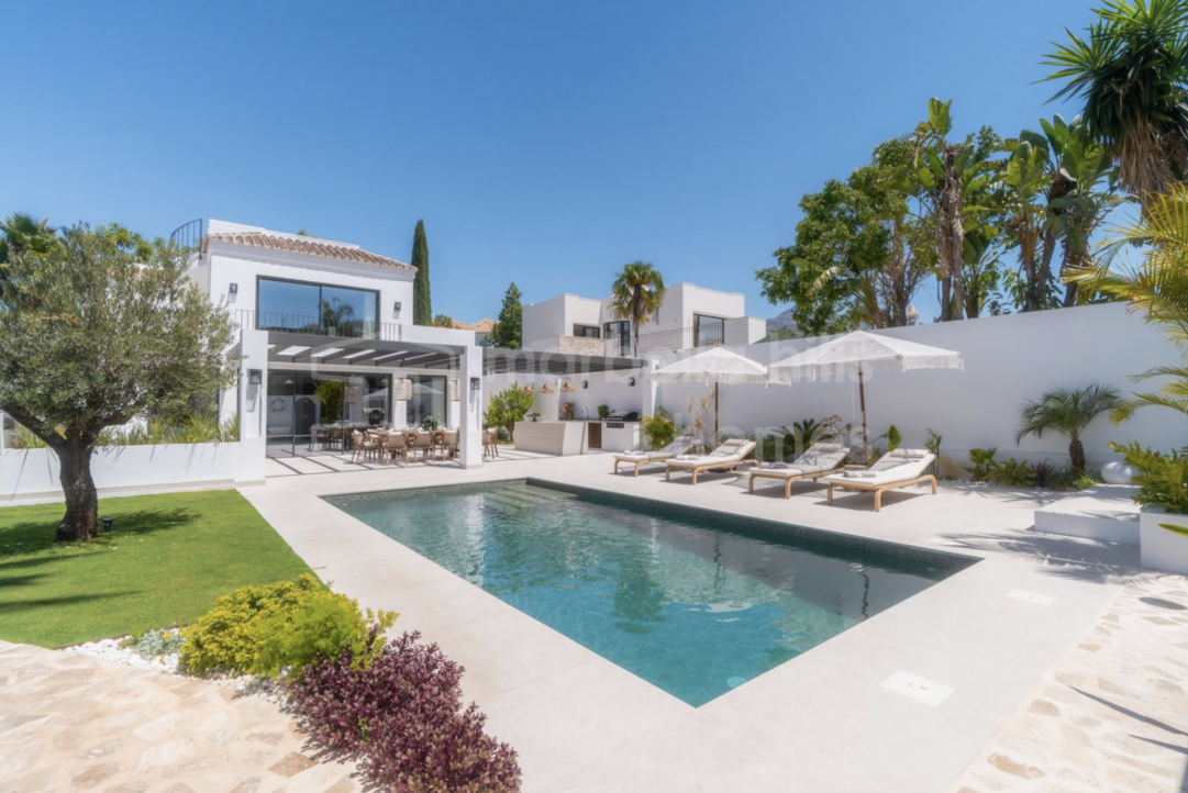 Situada en la prestigiosa zona de Aloha / Las Brisas en Nueva Andalucía, esta villa totalmente renovada es un verdadero ejemplo de lujo mediterráneo moderno. Con un diseño...
