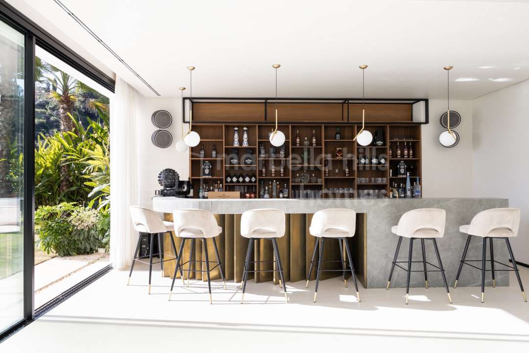 Moderna villa de lujo en El Paraíso, Estepona. 6 dormitorios, spa, piscina climatizada y vistas panorámicas. Exclusiva propiedad en la Costa del Sol por 4.995.000 €.