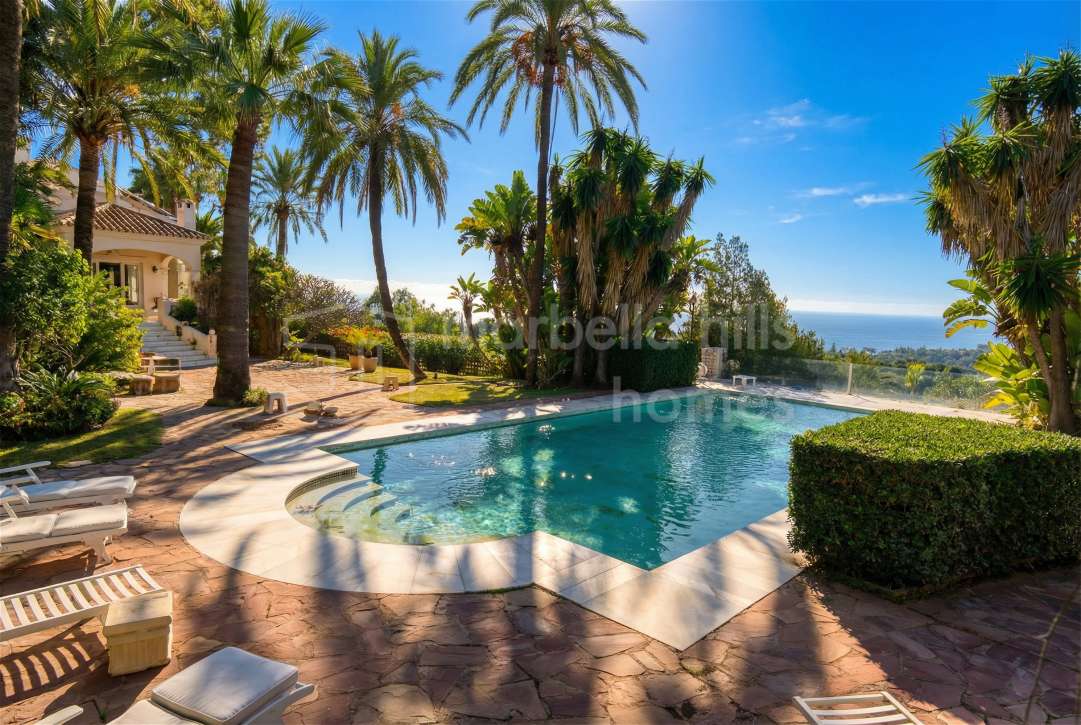 Villa de lujo con vistas al mar en venta en El Rosario Marbella Este con vistas panorámicas, amplia parcela plana, piscina privada y excelente ubicación cerca de playas, golf y...