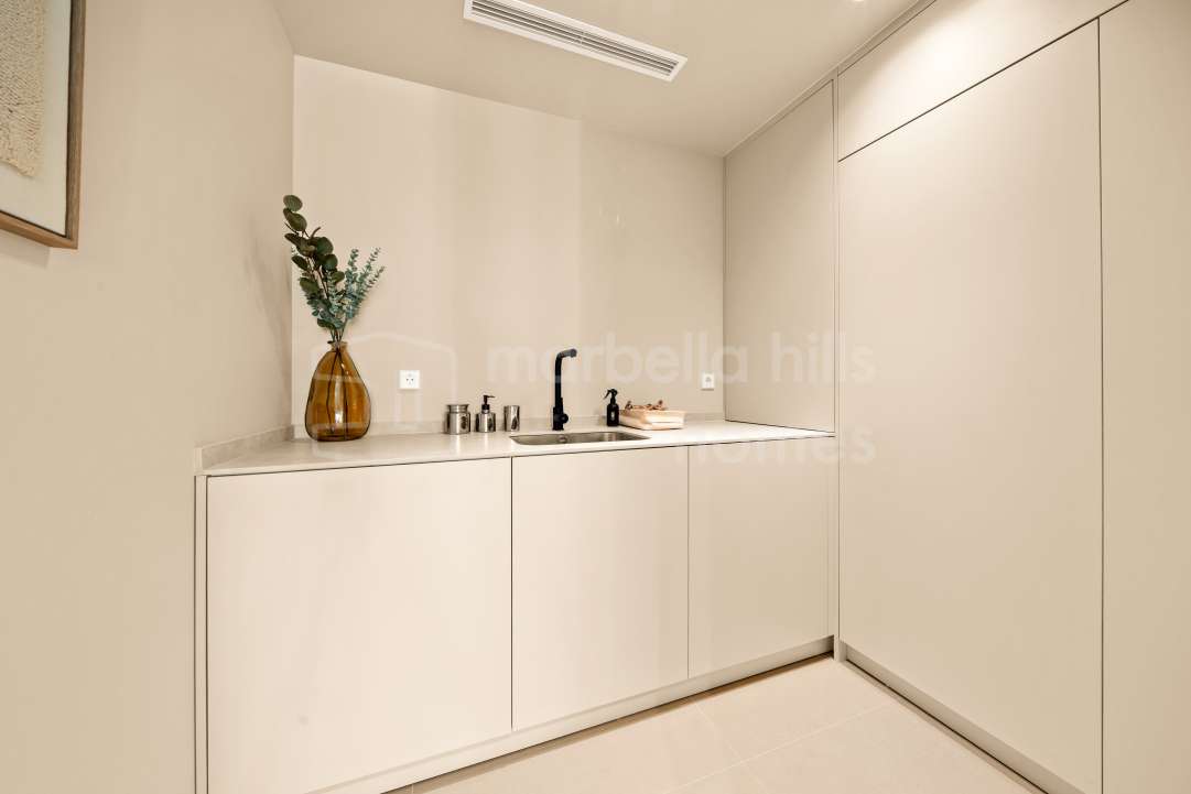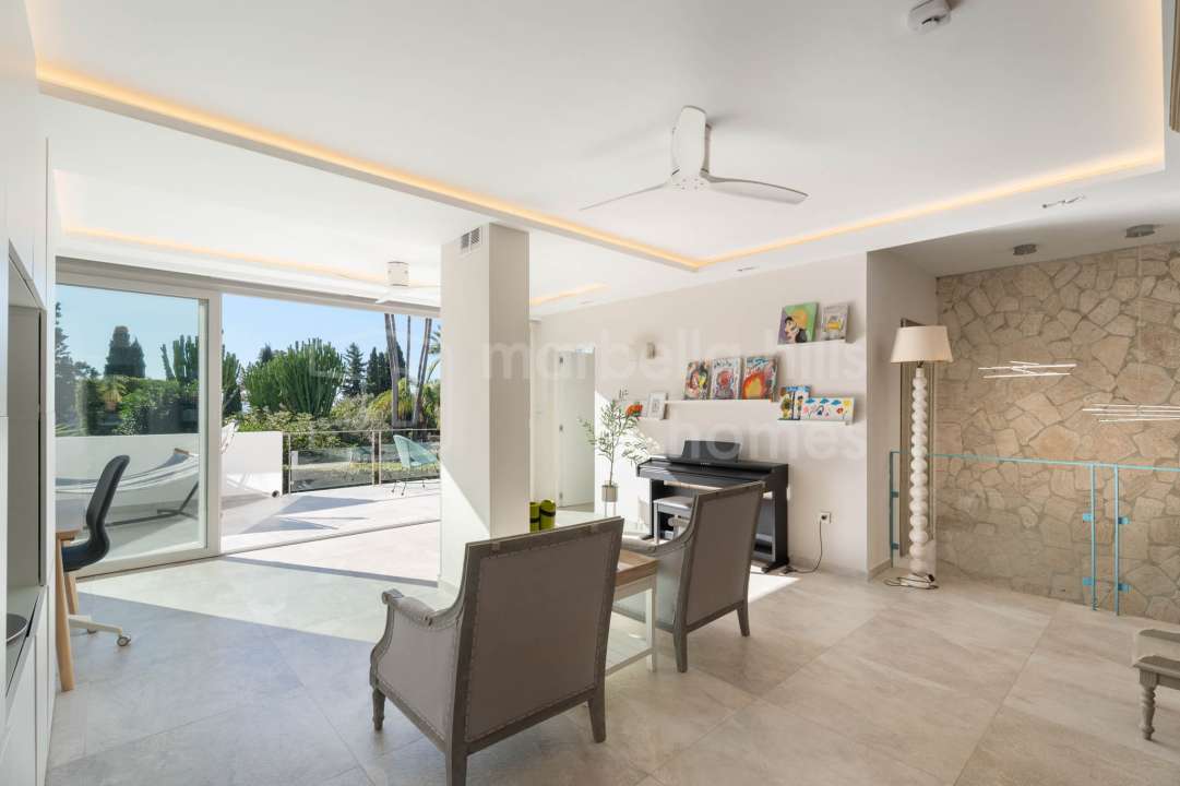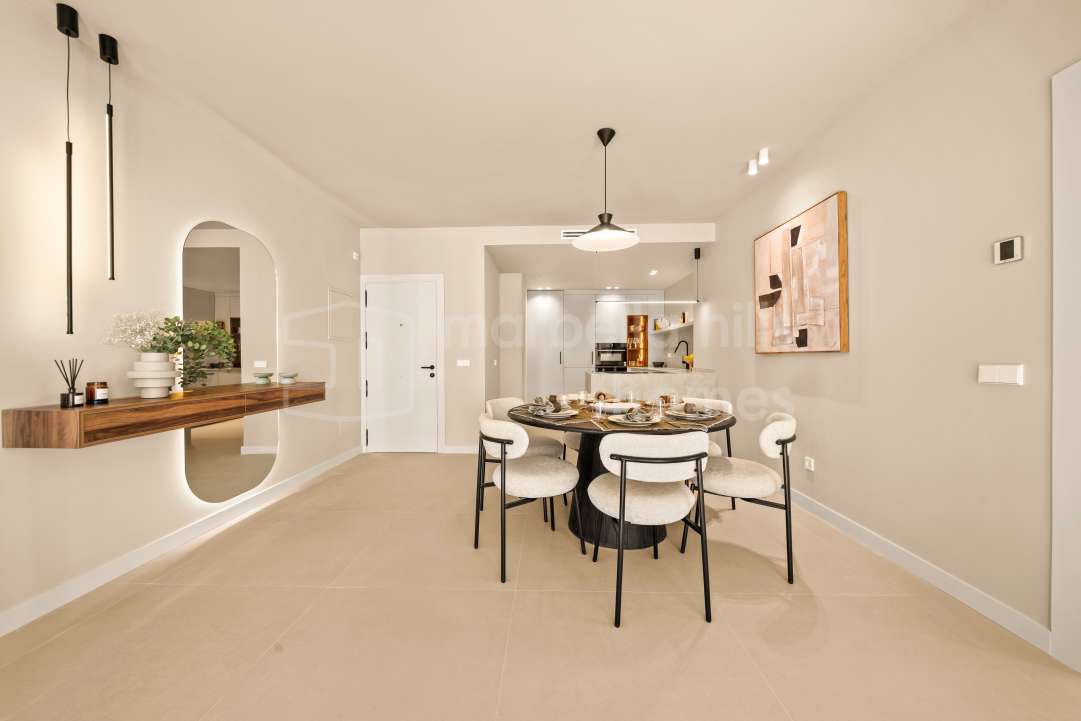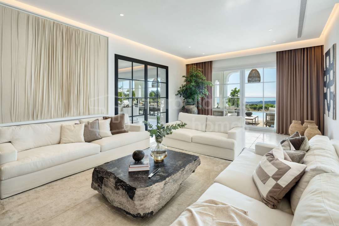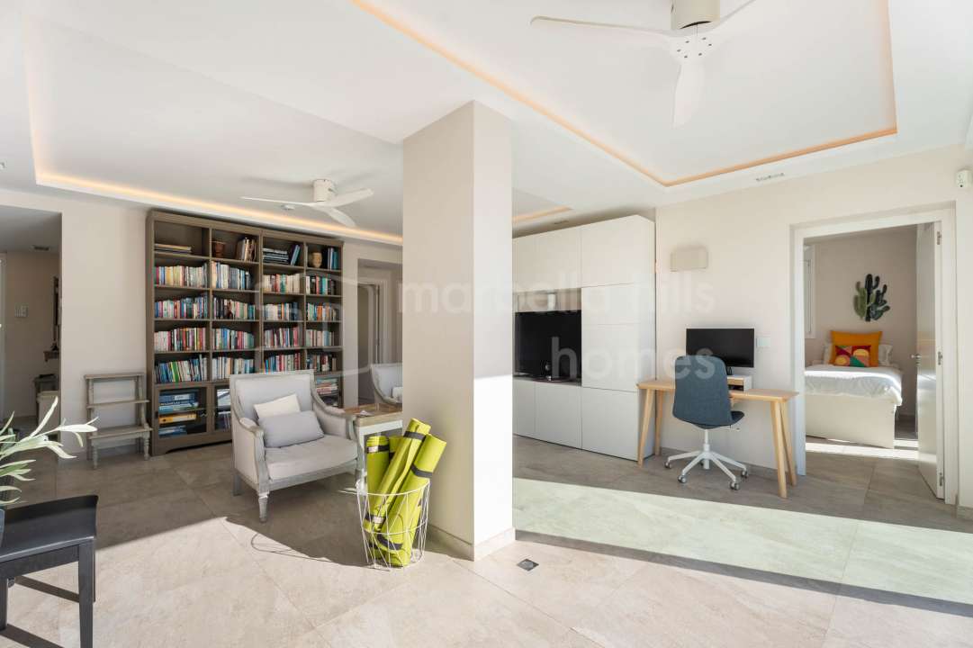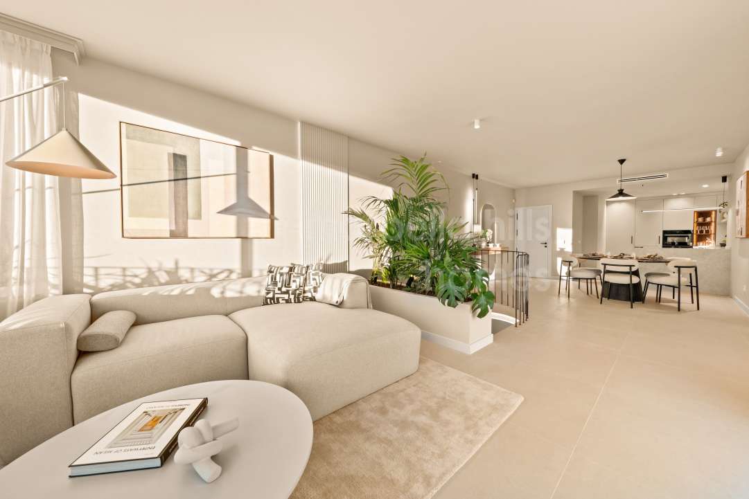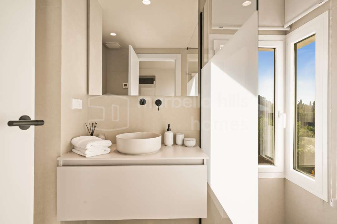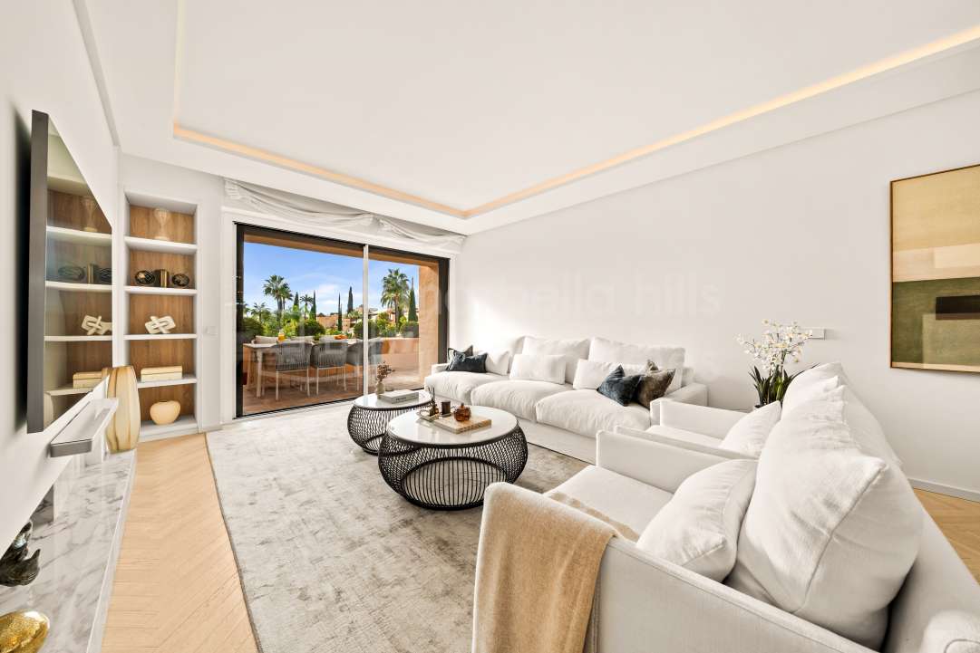 Appartement de 3 chambres entièrement rénové à Nueva Andalucía, avec terrasse privée, vues mer et montagne, design contemporain, parking privé, sécurité 24h et accès facile aux...