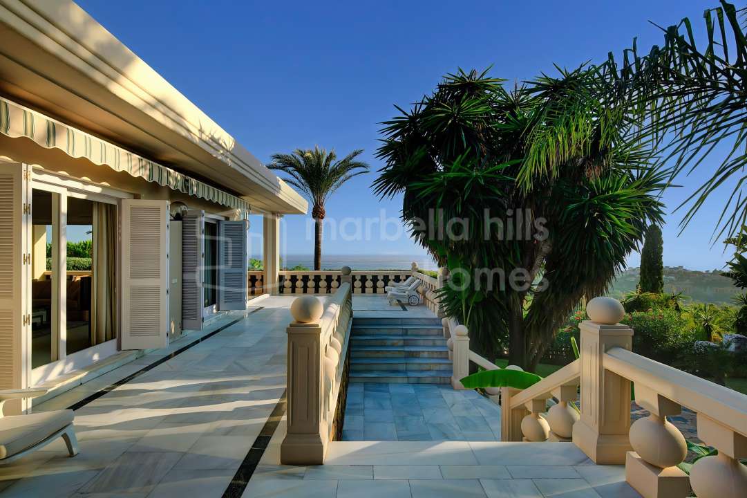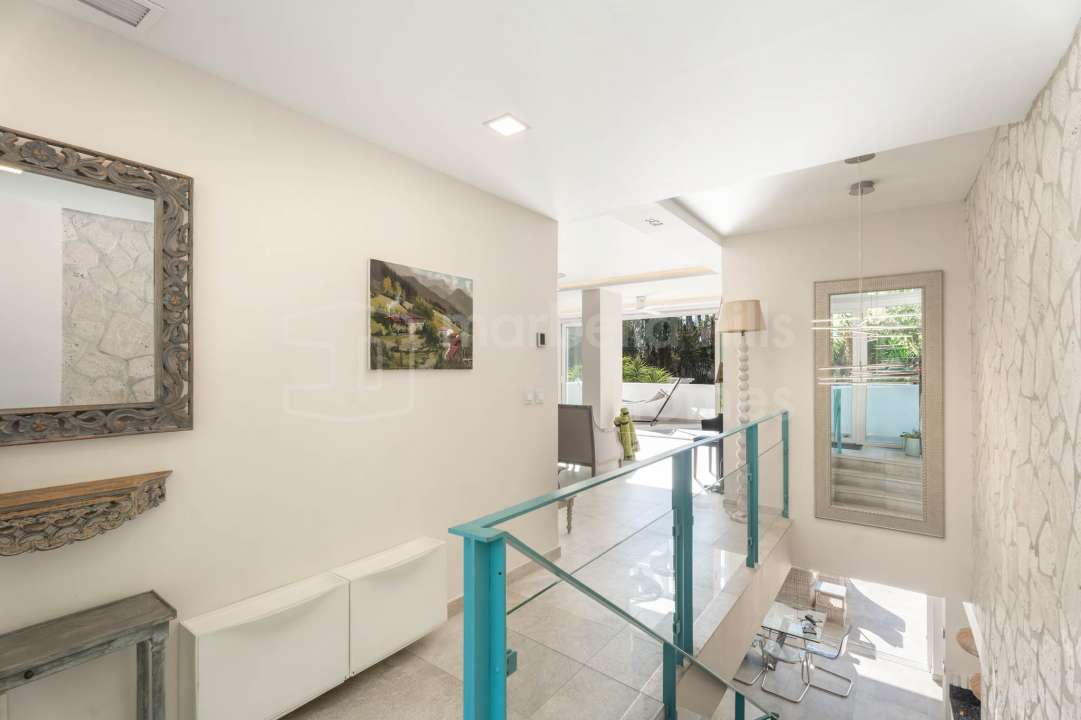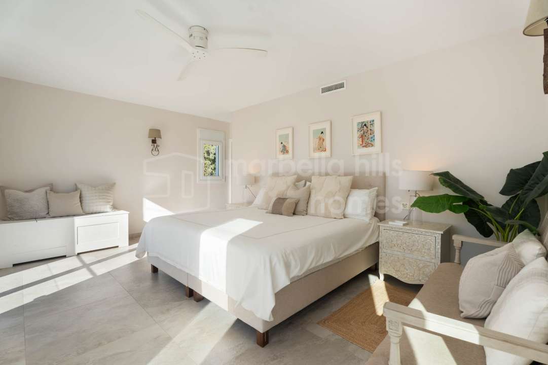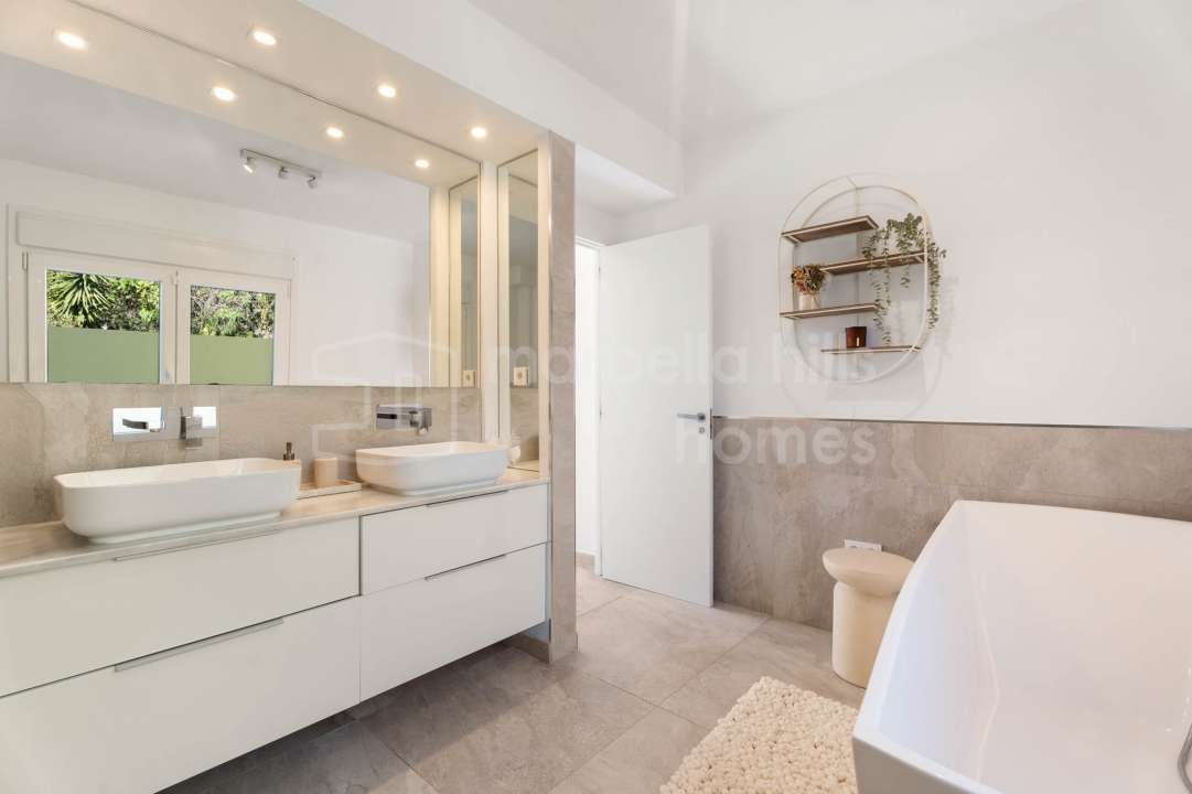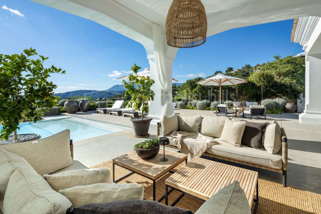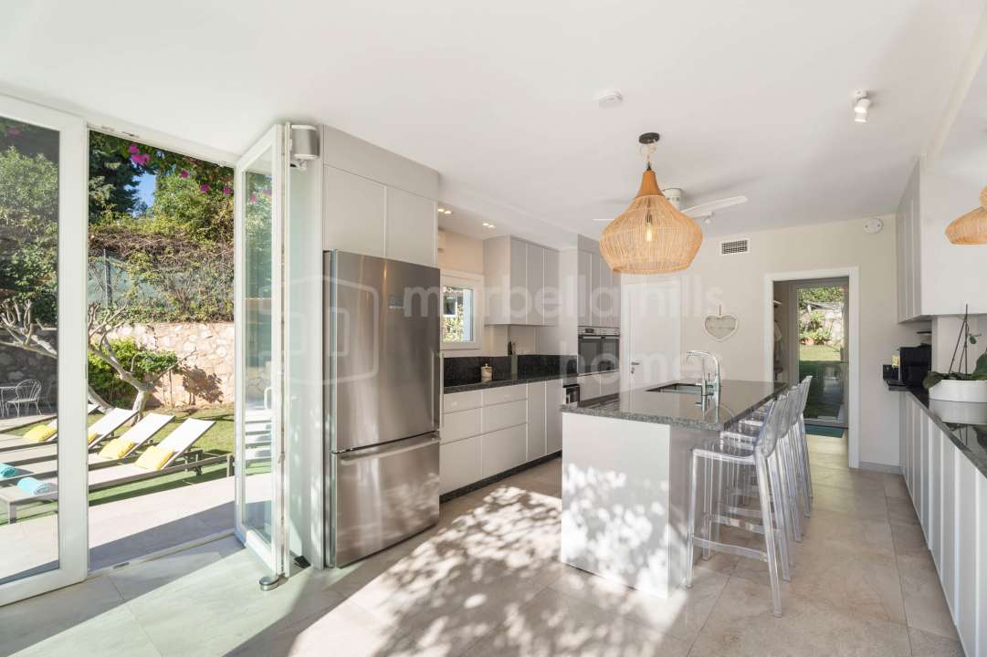 Superbe villa rénovée à El Rosario, Marbella Est, avec 6 chambres, piscine privée, solarium, cuisine contemporaine, panneaux solaires et licence touristique. À distance de...