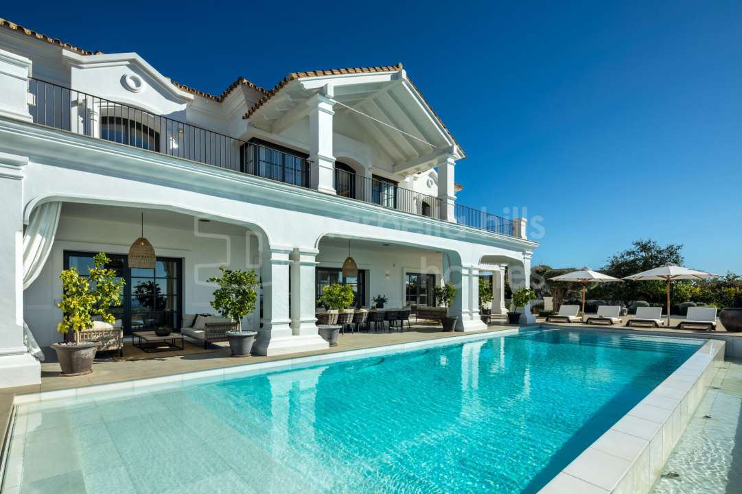 Mansion contemporaine d’inspiration andalouse dans le Marbella Club Golf Resort. Six chambres, piscine de 113 m², vues mer et Gibraltar, salle de cinéma, spa, gymnase et...