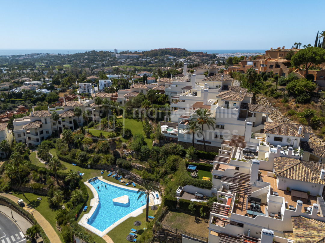 Superbe penthouse duplex à Los Capanes del Golf, Benahavís, avec plus de 100 m² de terrasses, 3 suites, niveau privé pour la suite parentale, prestations de type resort et deux...