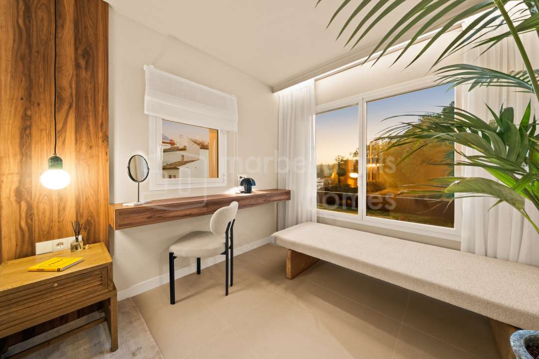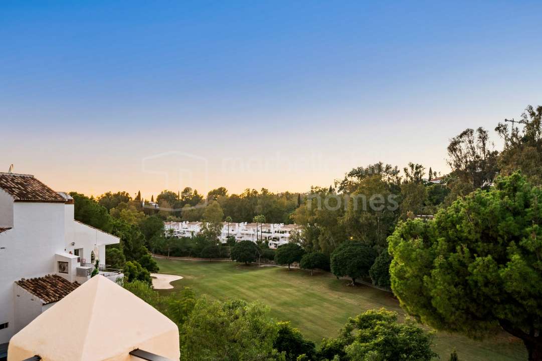 Duplex entièrement rénové à Eagles Village, La Quinta, Benahavís. Design méditerranéen moderne, vues sur le golf, parking privé, licence touristique et proximité du Westin Hotel...