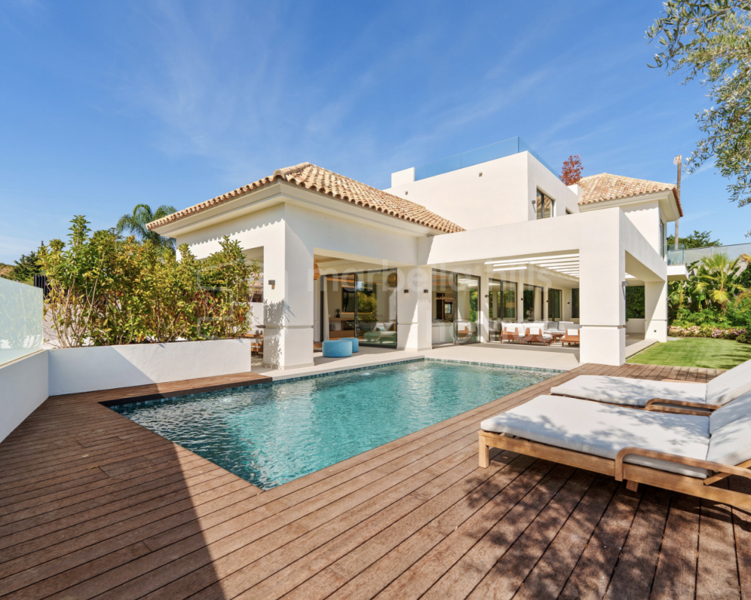 Cette superbe villa contemporaine allie parfaitement architecture moderne, intérieurs élégants et emplacement privilégié, à seulement quelques pas de la plage de San Pedro de...