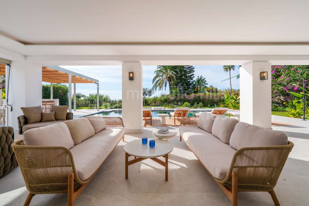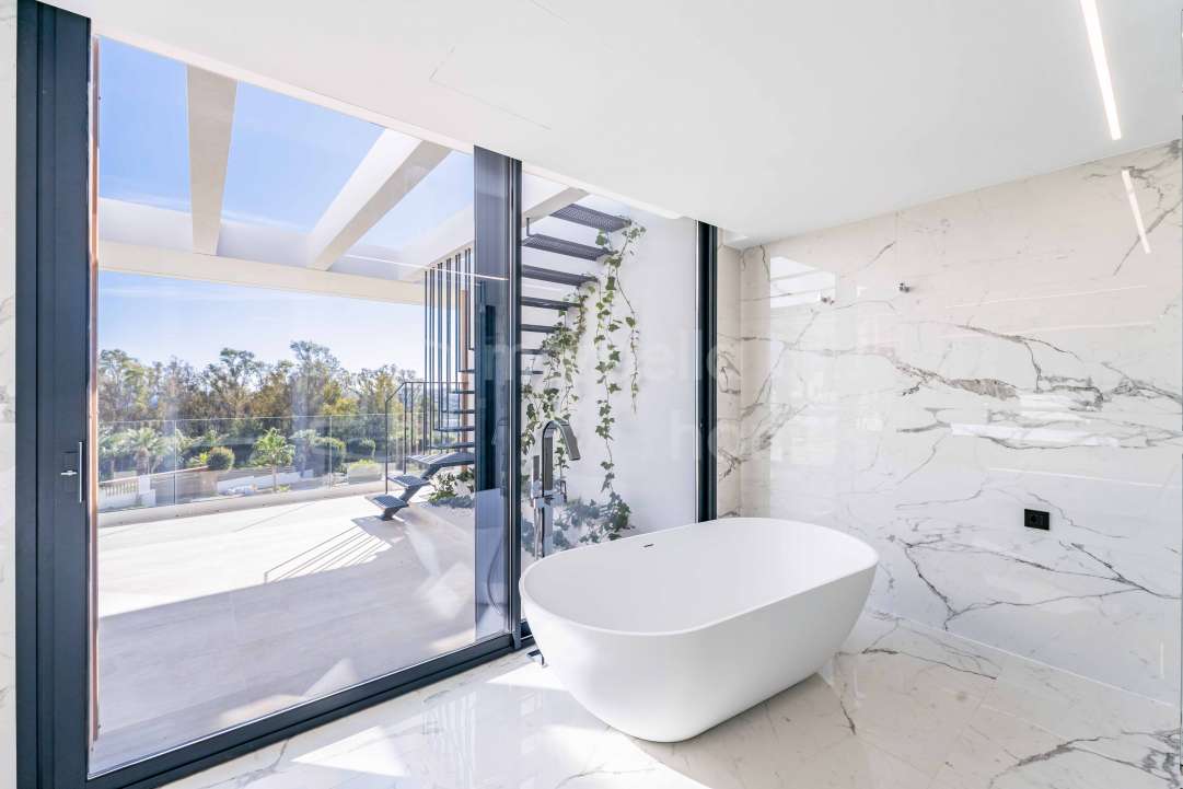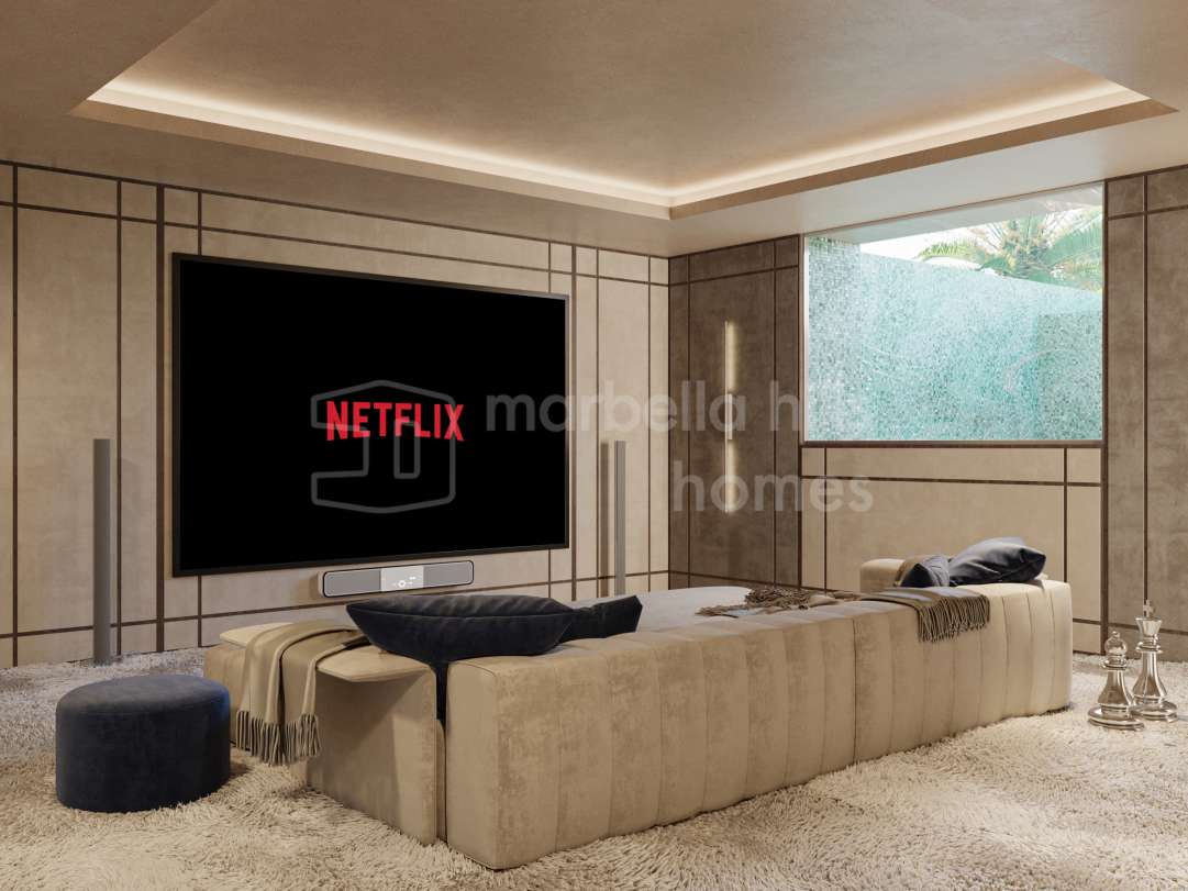 Villa contemporaine de luxe à Nueva Andalucía avec 5 chambres, spa, cinéma, salle de sport, piscine privée, jardins tropicaux et vastes espaces intérieurs et extérieurs....