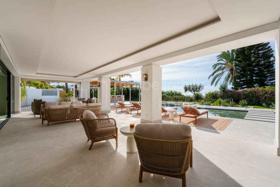 Villa méditerranéenne rénovée à La Quinta avec vue mer, 5 chambres, salle de sport, sauna, cave à vin, grandes terrasses et piscine privée. Propriété de luxe clé en main près du...