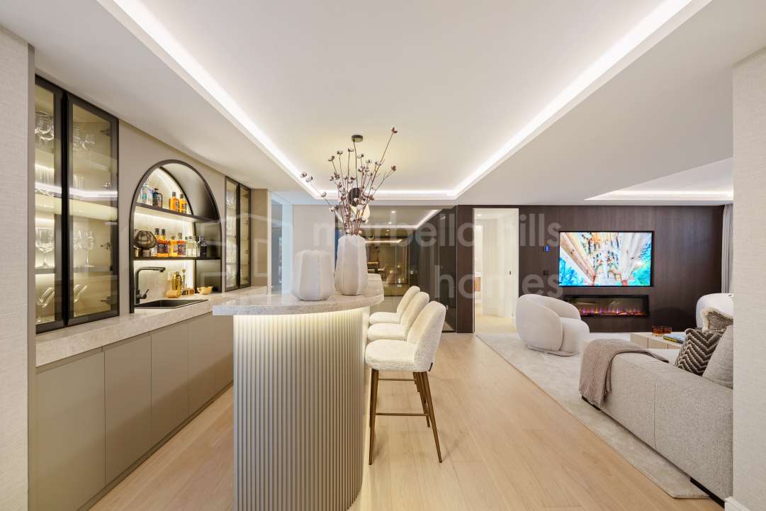 Appartement de 3 chambres rénové en 2025 à Montebello Hills, Sierra Blanca. Terrasse exposée sud, design contemporain, vues paisibles, prestations haut de gamme et sécurité...