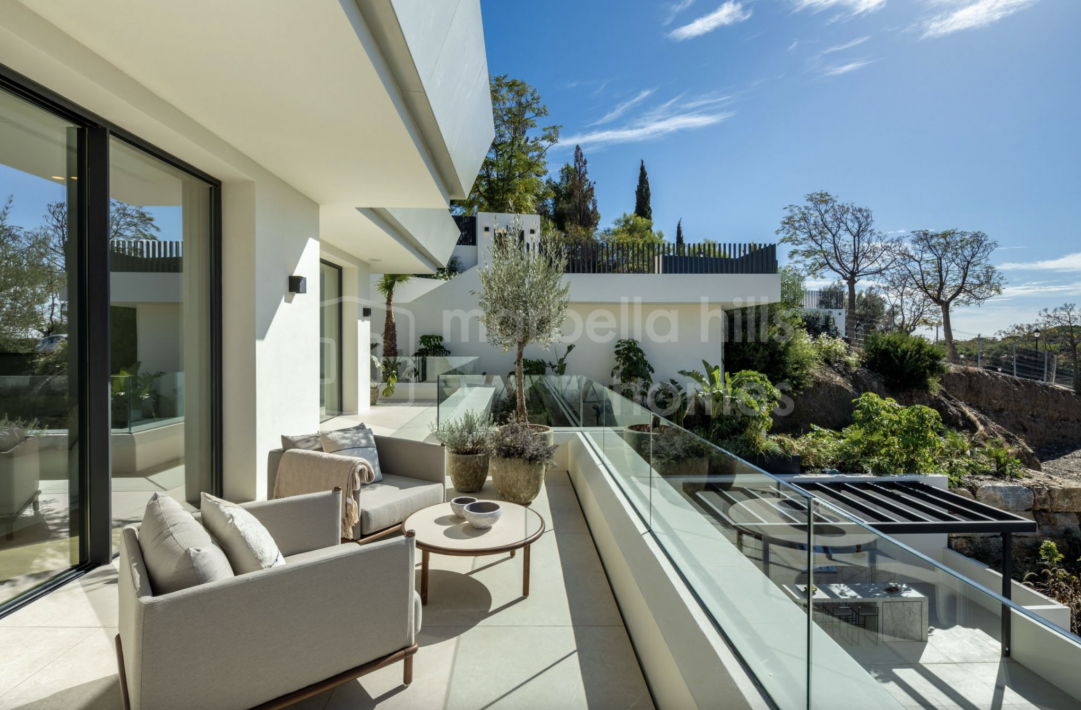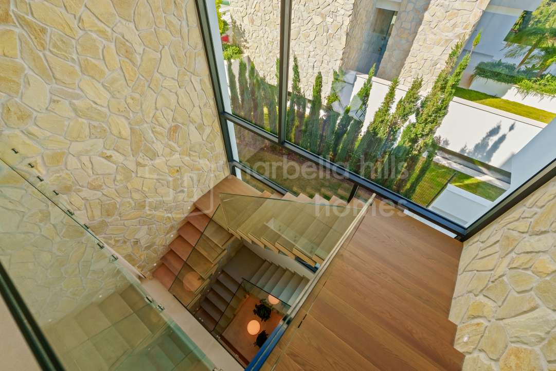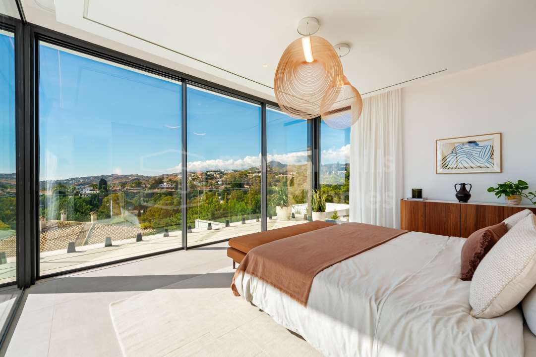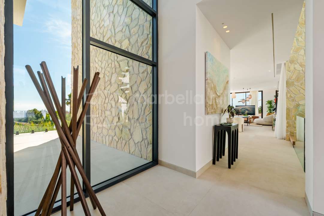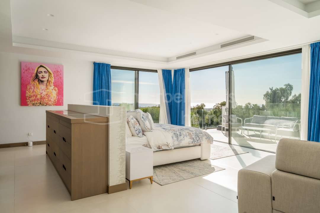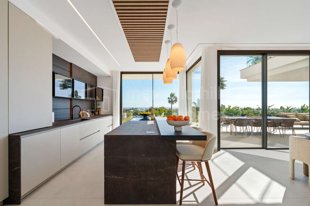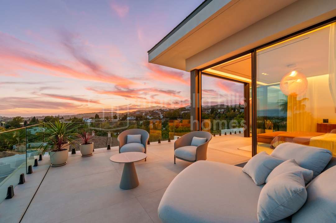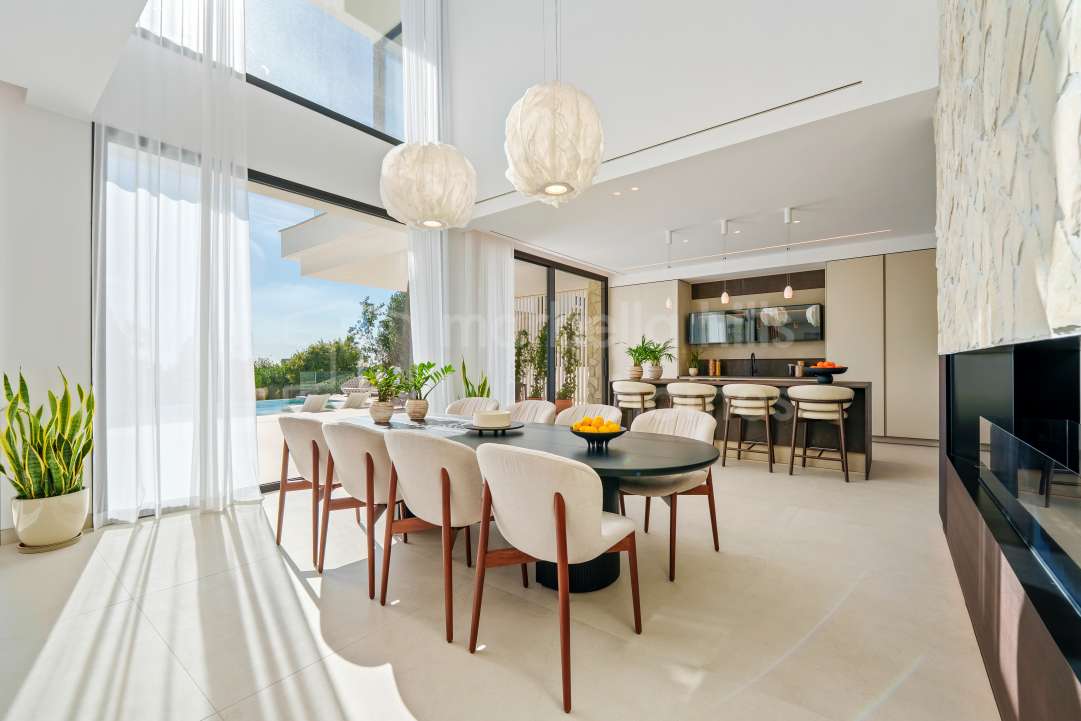 Superbe villa contemporaine à Monte Halcones, près de La Zagaleta. 5 suites, vues mer, piscine, ascenseur privé, garage et finitions haut de gamme. Proche golf, plages et Marbella.