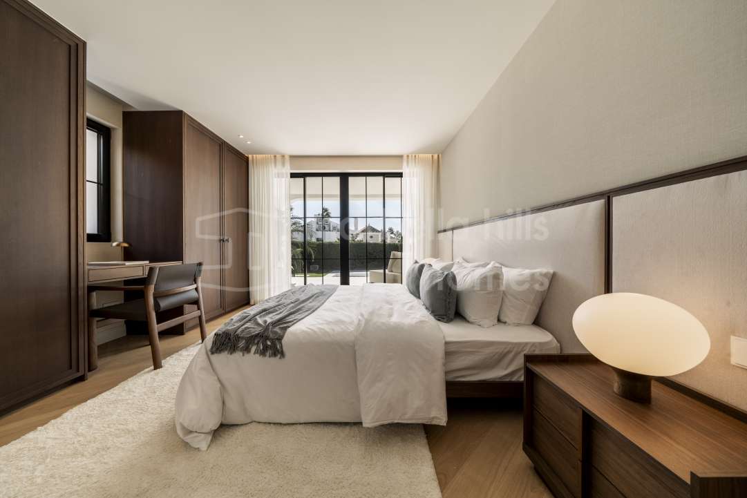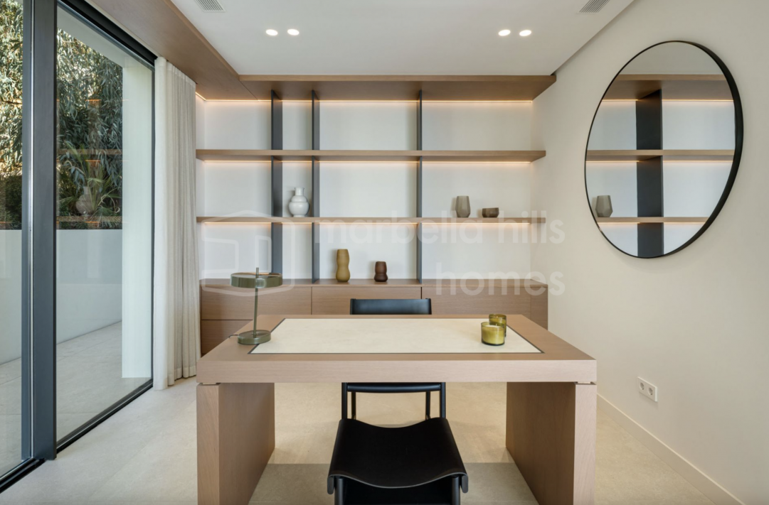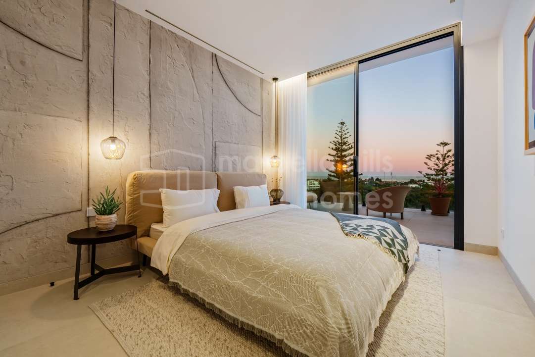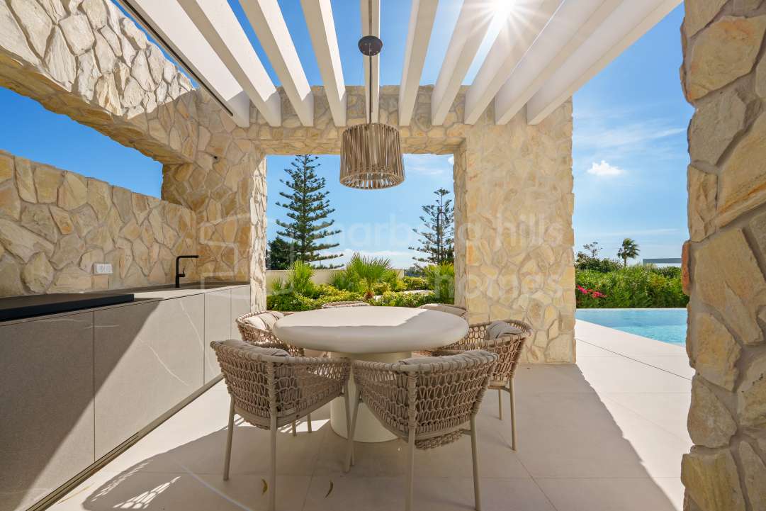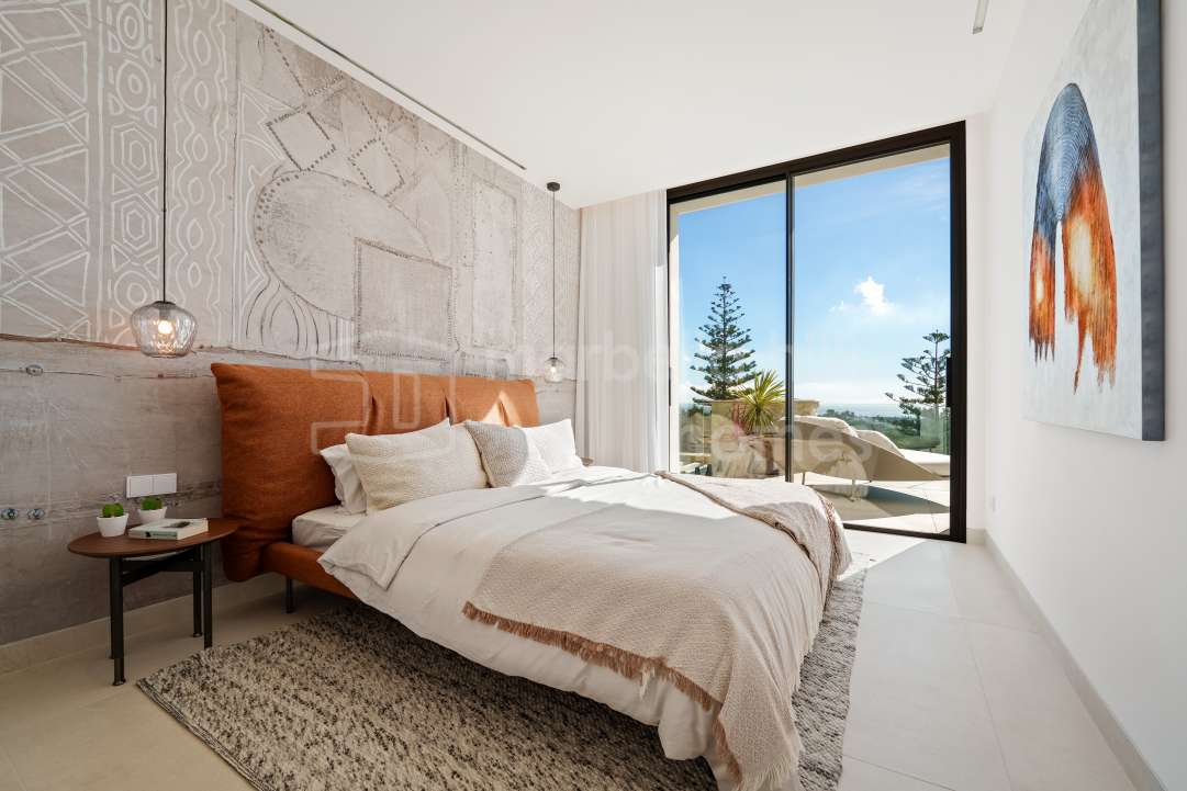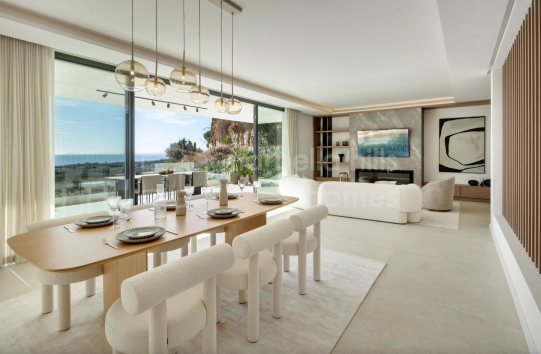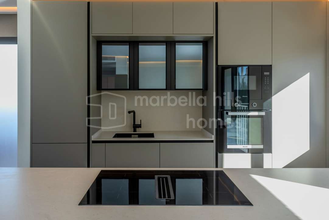 Villa neuve à Elviria, Marbella Est, orientation sud, vues mer, 5 suites, finitions haut de gamme, vastes terrasses, piscine privée et design contemporain. Option mobilier...