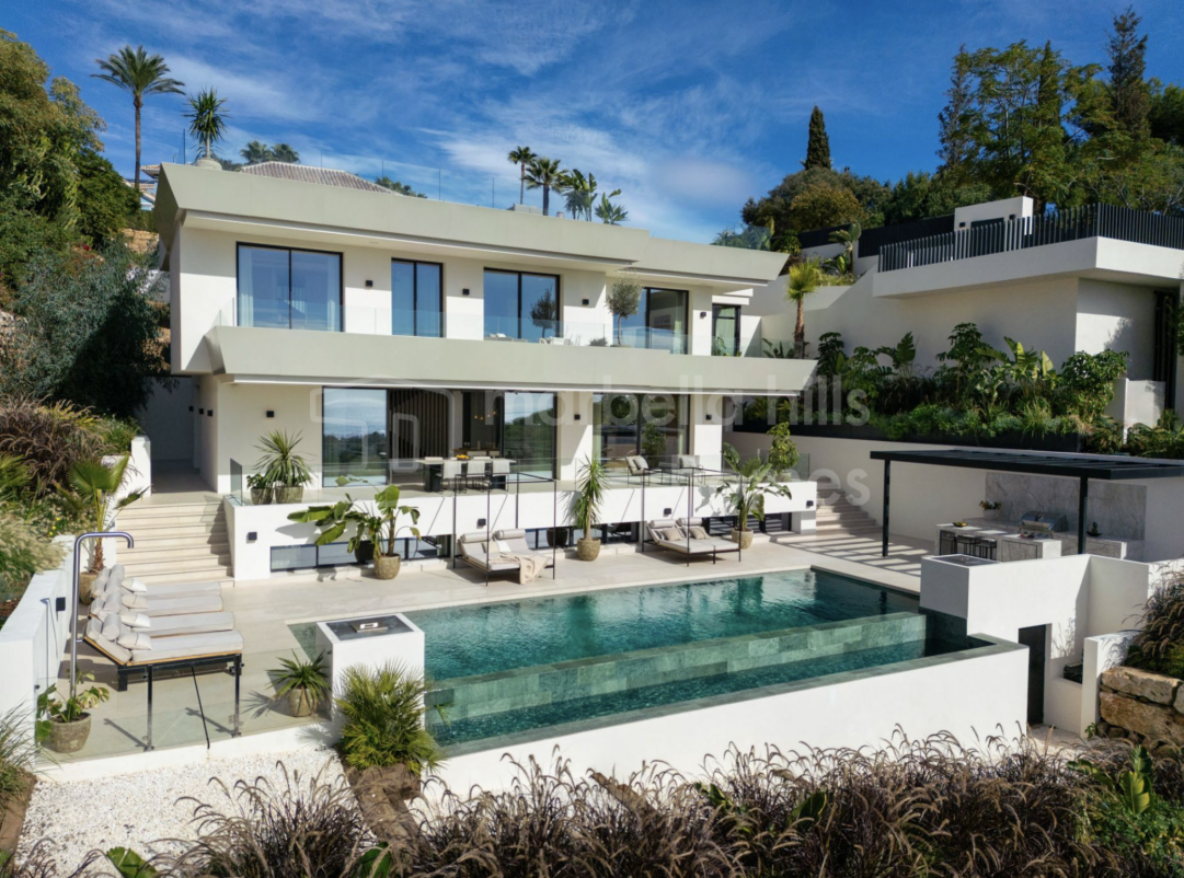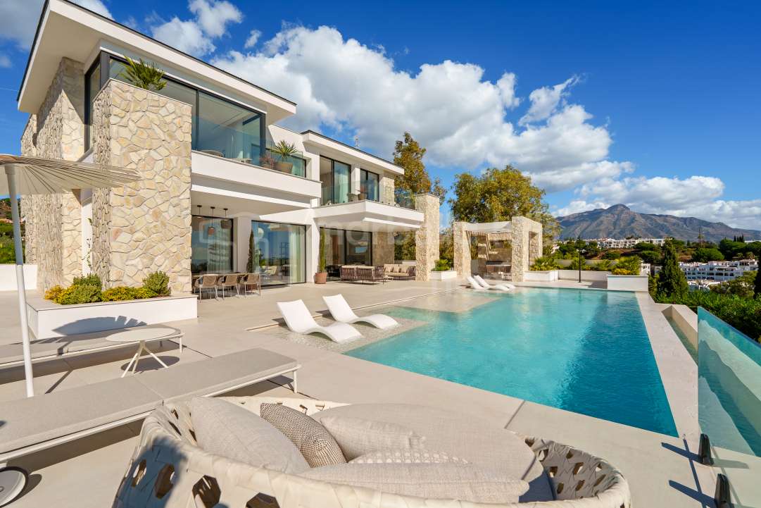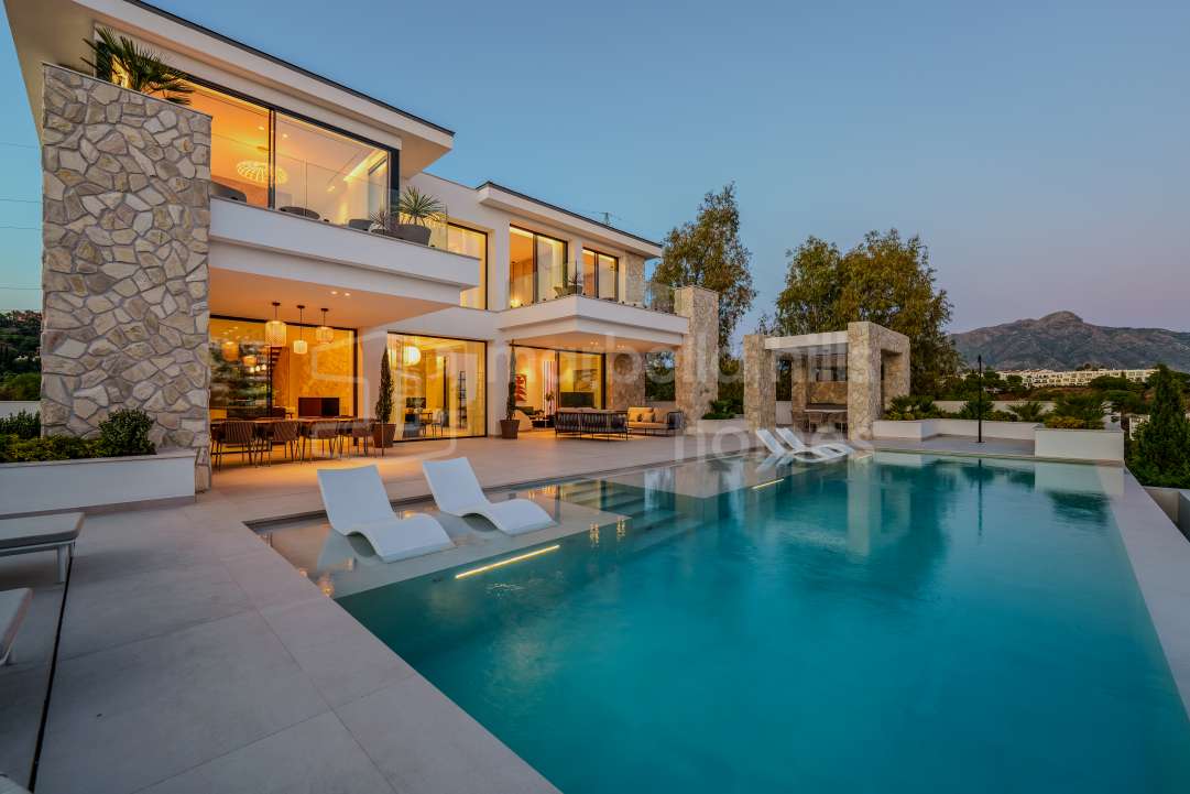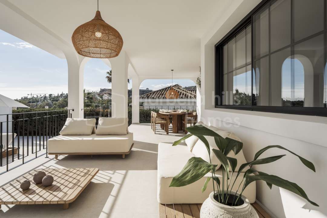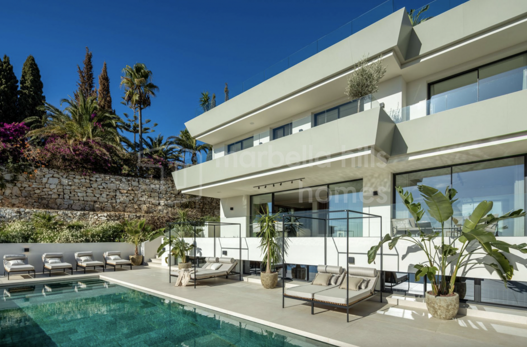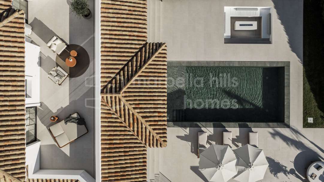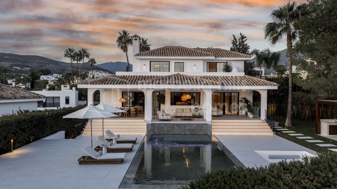 Superbe villa rénovée de 5 chambres à Nueva Andalucía, avec spa intérieur, piscine, sauna, hammam, gym extérieur, jardin spacieux, vues mer & montagne, domotique Lutron et...