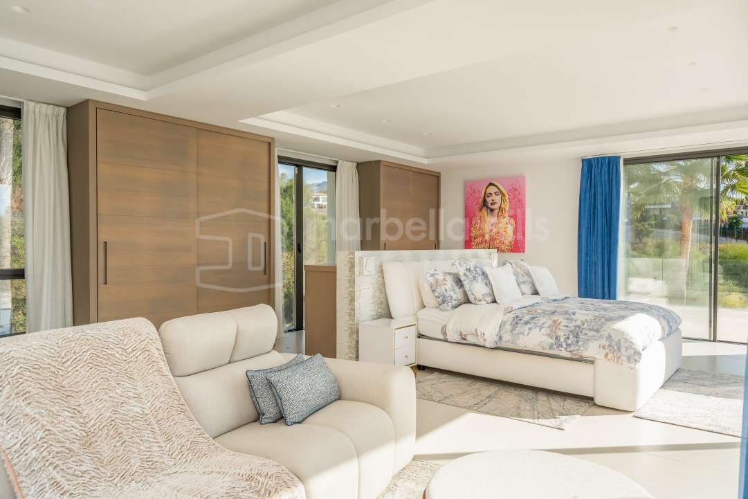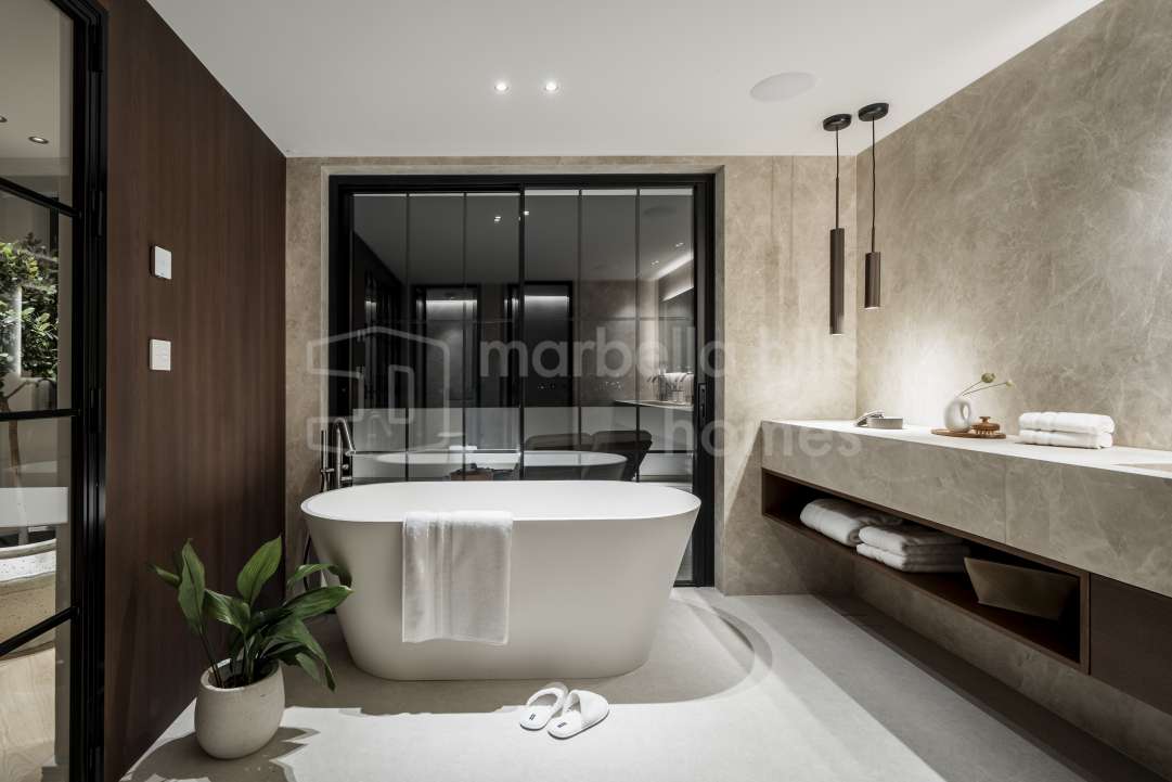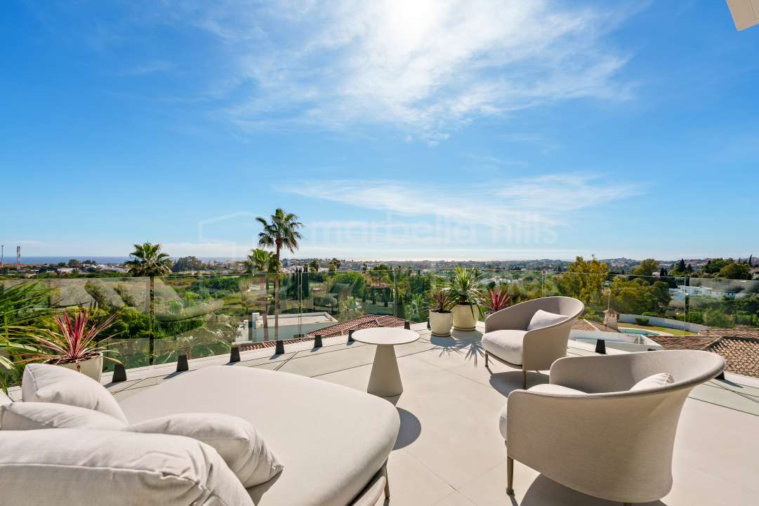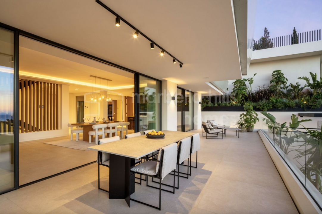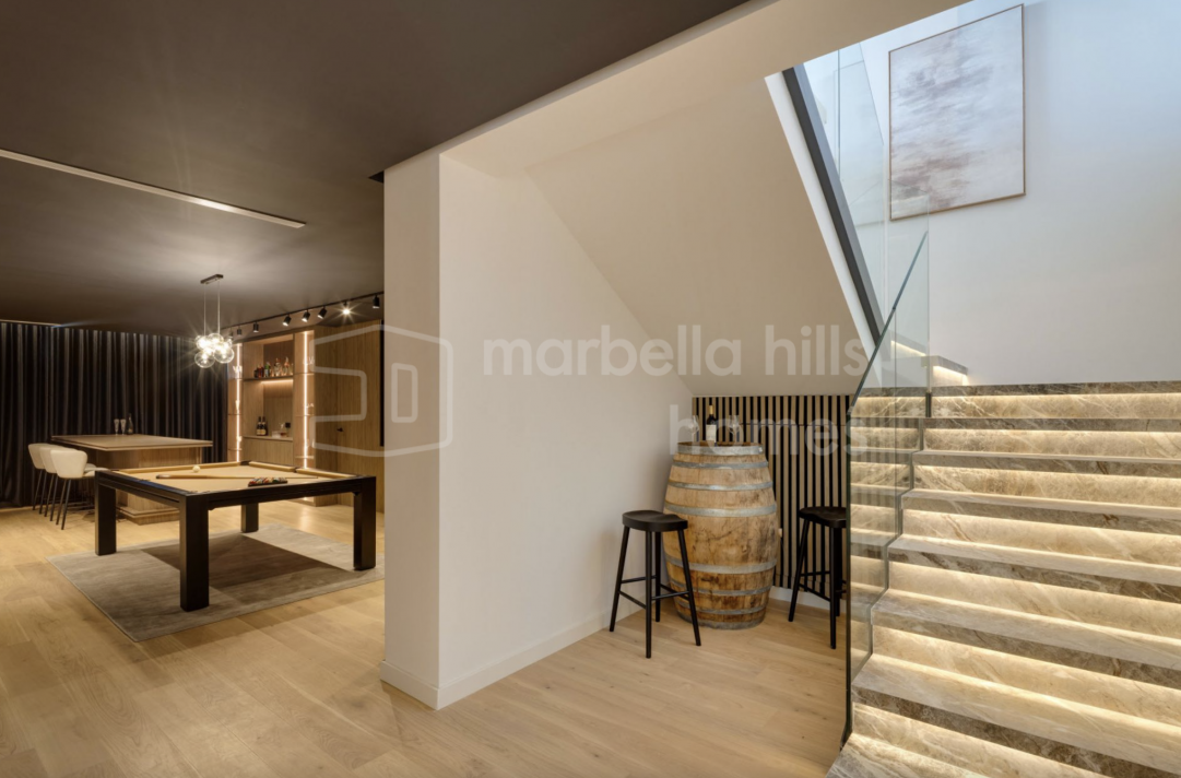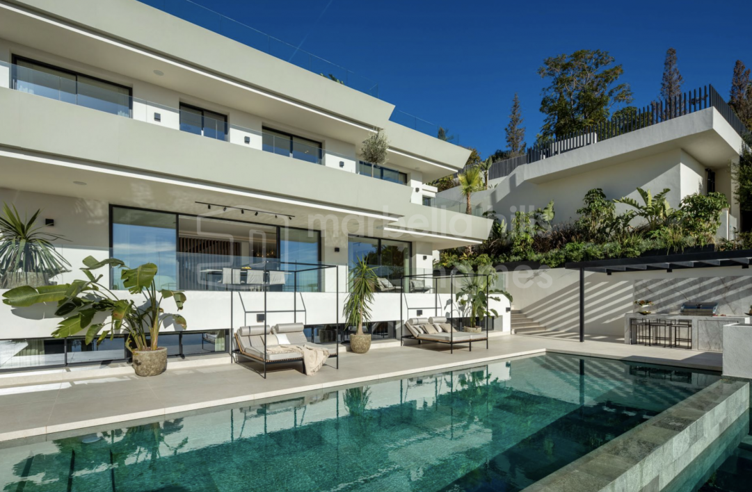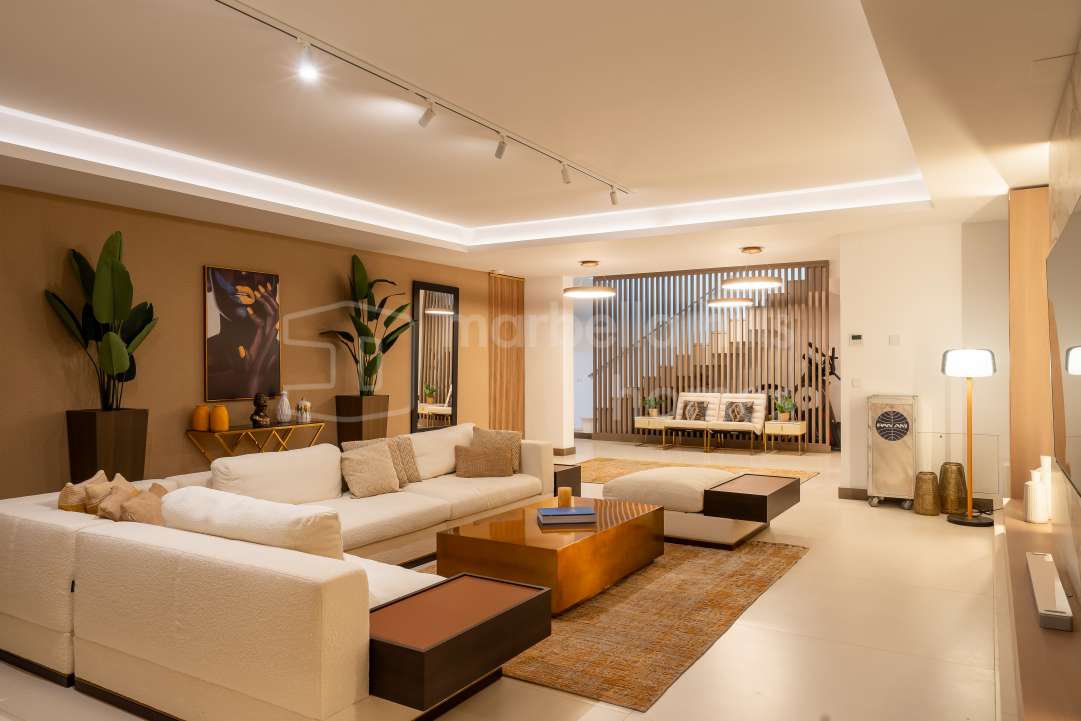 Superbe villa rénovée de 5 chambres à Nueva Andalucía, avec spa intérieur, piscine, sauna, hammam, gym extérieur, jardin spacieux, vues mer & montagne, domotique Lutron et...