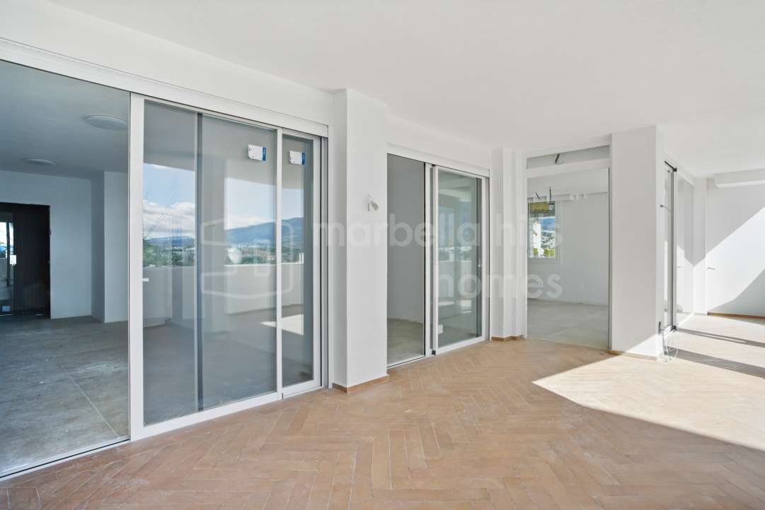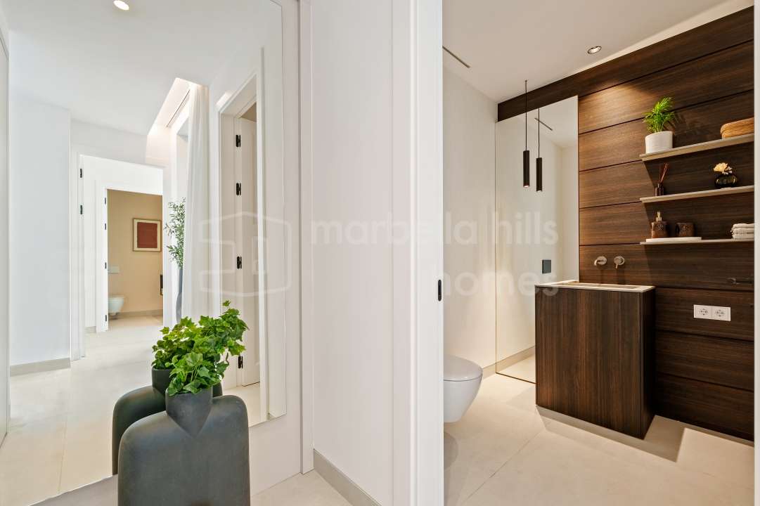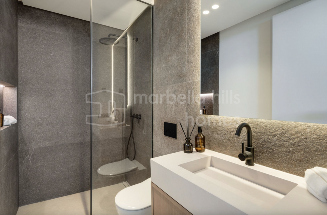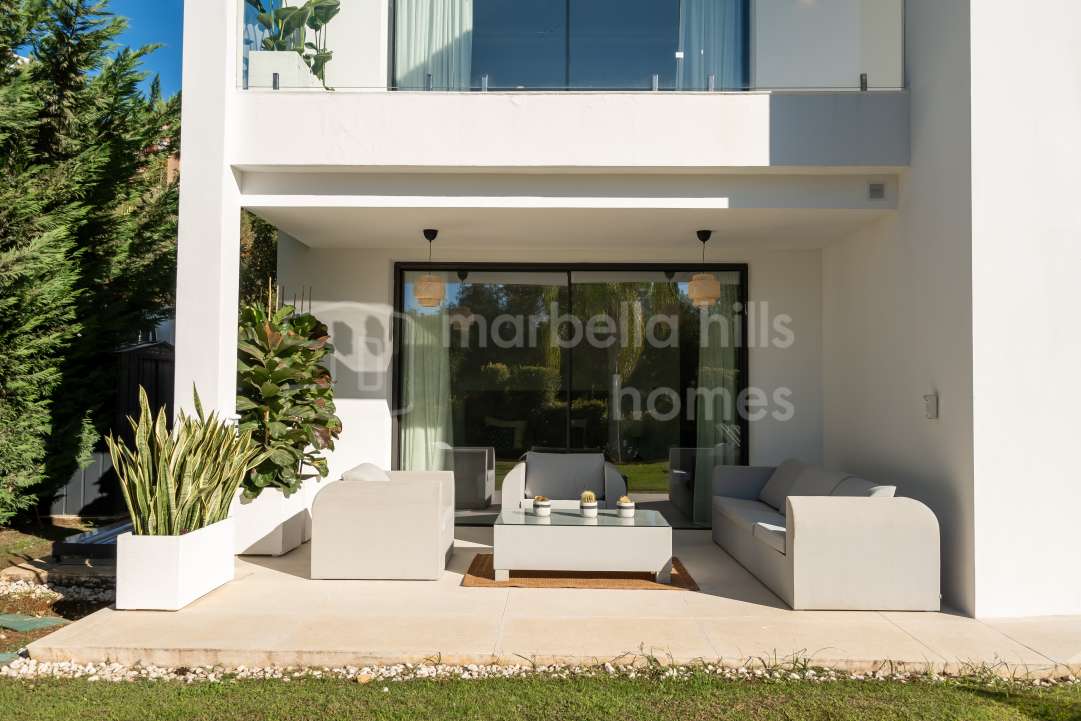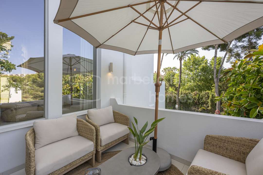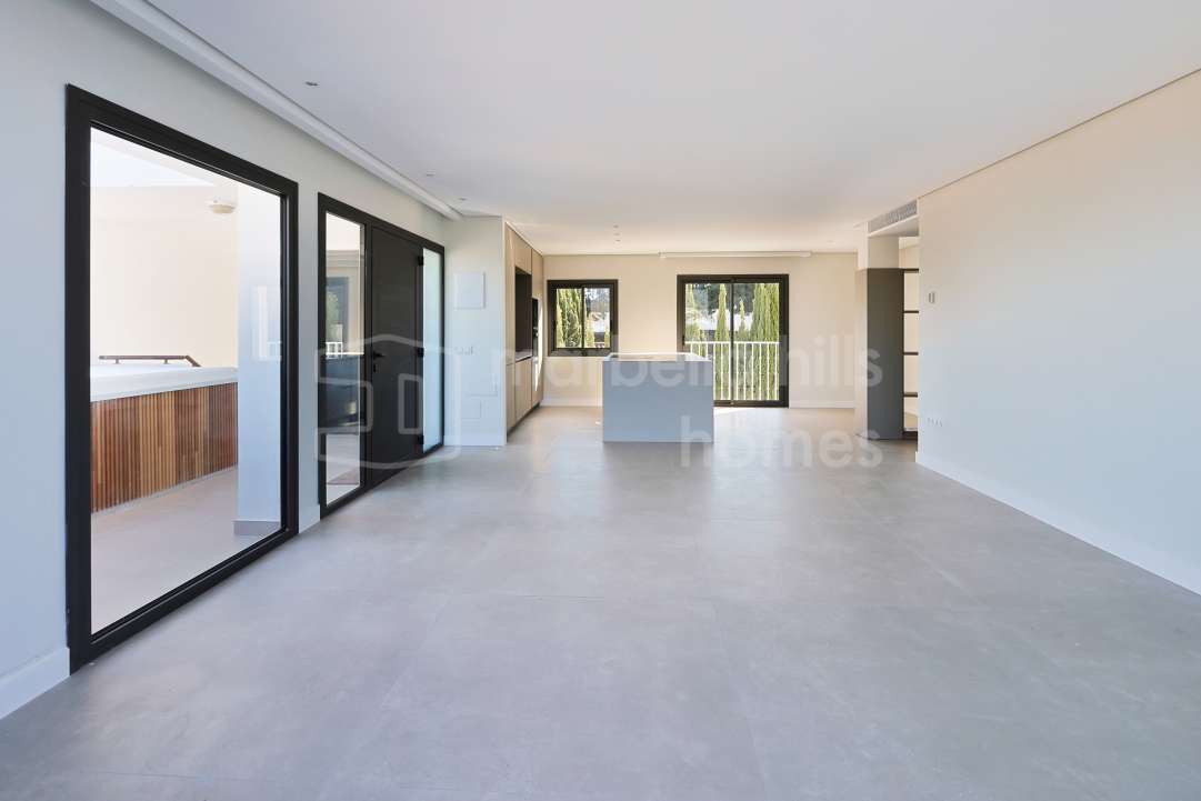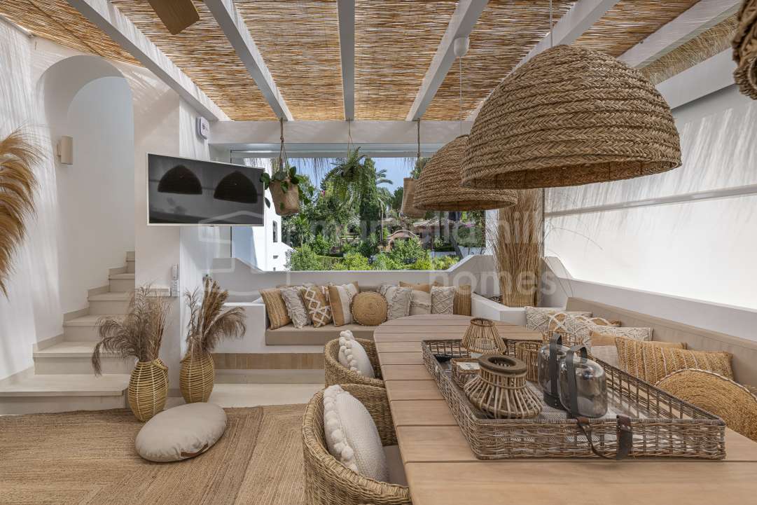 Superbe duplex de quatre chambres à Alcores del Golf, Marbella. Design moderne, finitions haut de gamme, grandes terrasses et jardin privé dans une communauté doublement...
