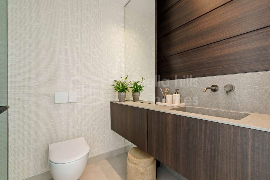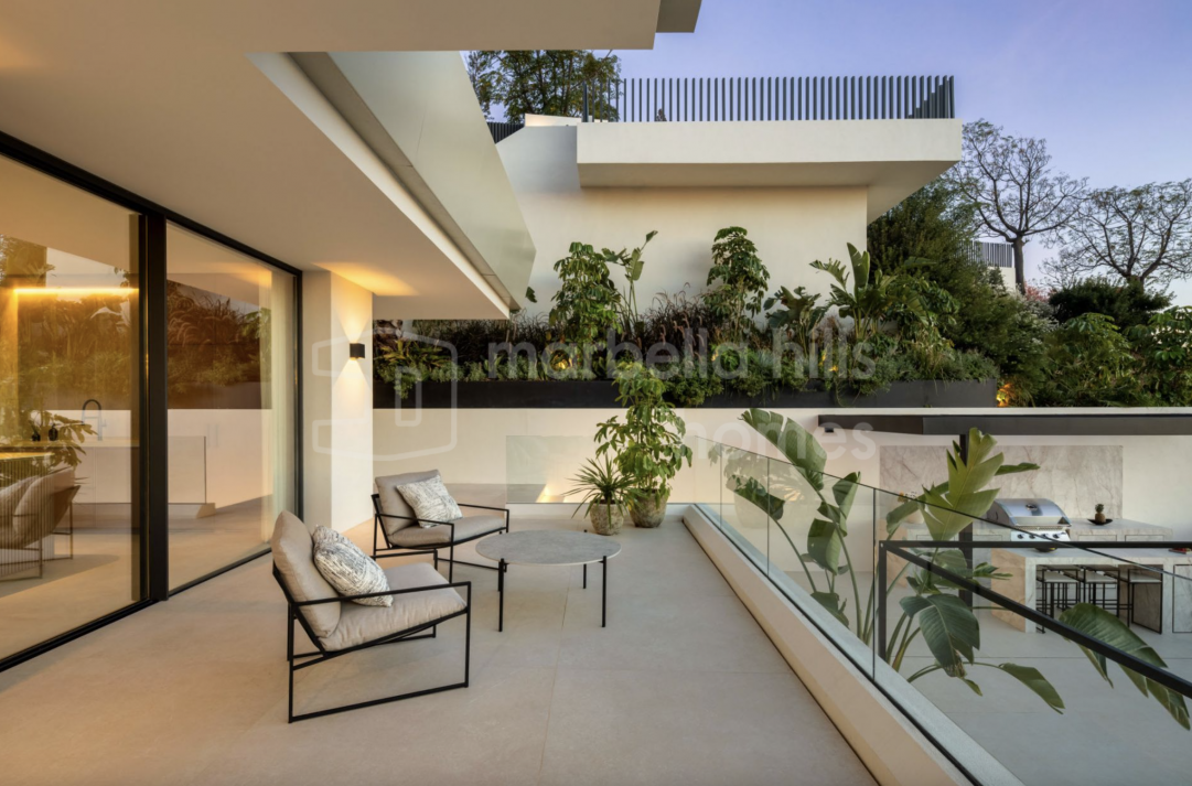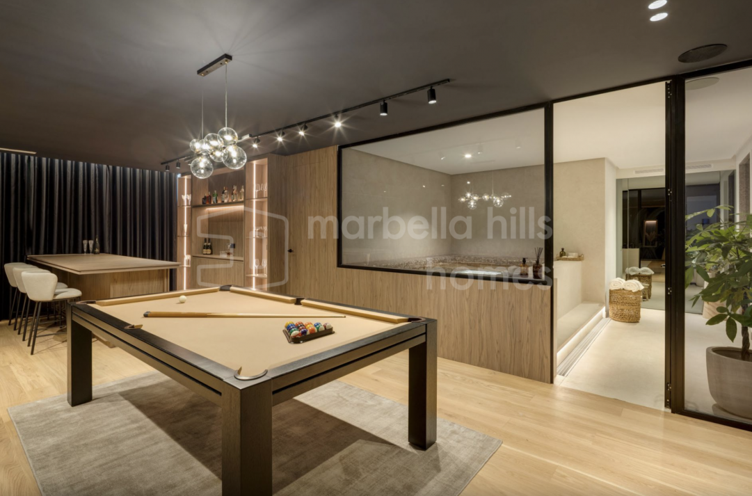 Superbe villa contemporaine à La Quinta, Benahavís : 5 chambres, 577 m² construits, 428 m² de terrasses, piscine à débordement, salle de cinéma, salle de sport, garage privé et...